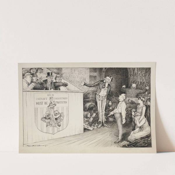 At the U.S. Customs House, a family pleads with Uncle Sam as officials go through their belongings (1901) by William Henry Walker - Wall Art Print