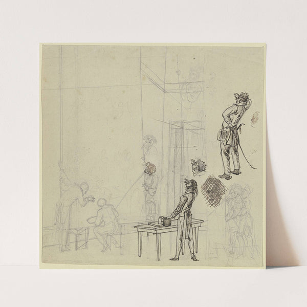 Atelierszene mit einem Besucher vor der Staffelei und anderen Skizzen by Johann Friedrich Morgenstern  - Wall Art Print
