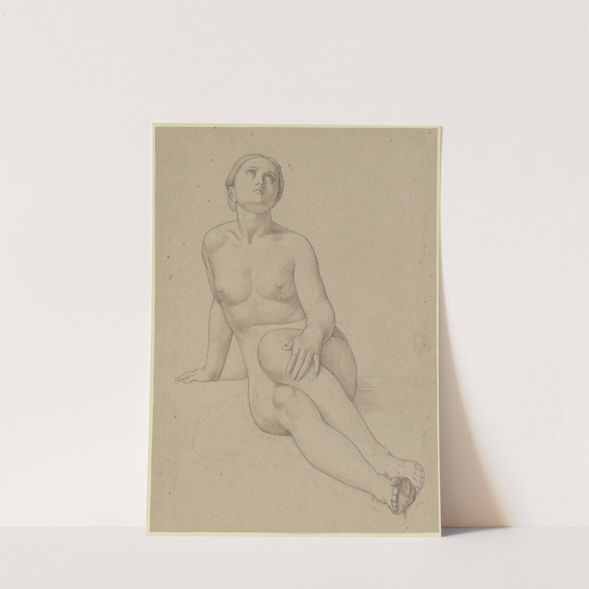 Auf dem Boden sitzender weiblicher Akt auf den rechten Arm gestützt by Eduard von Steinle - Wall Art Print