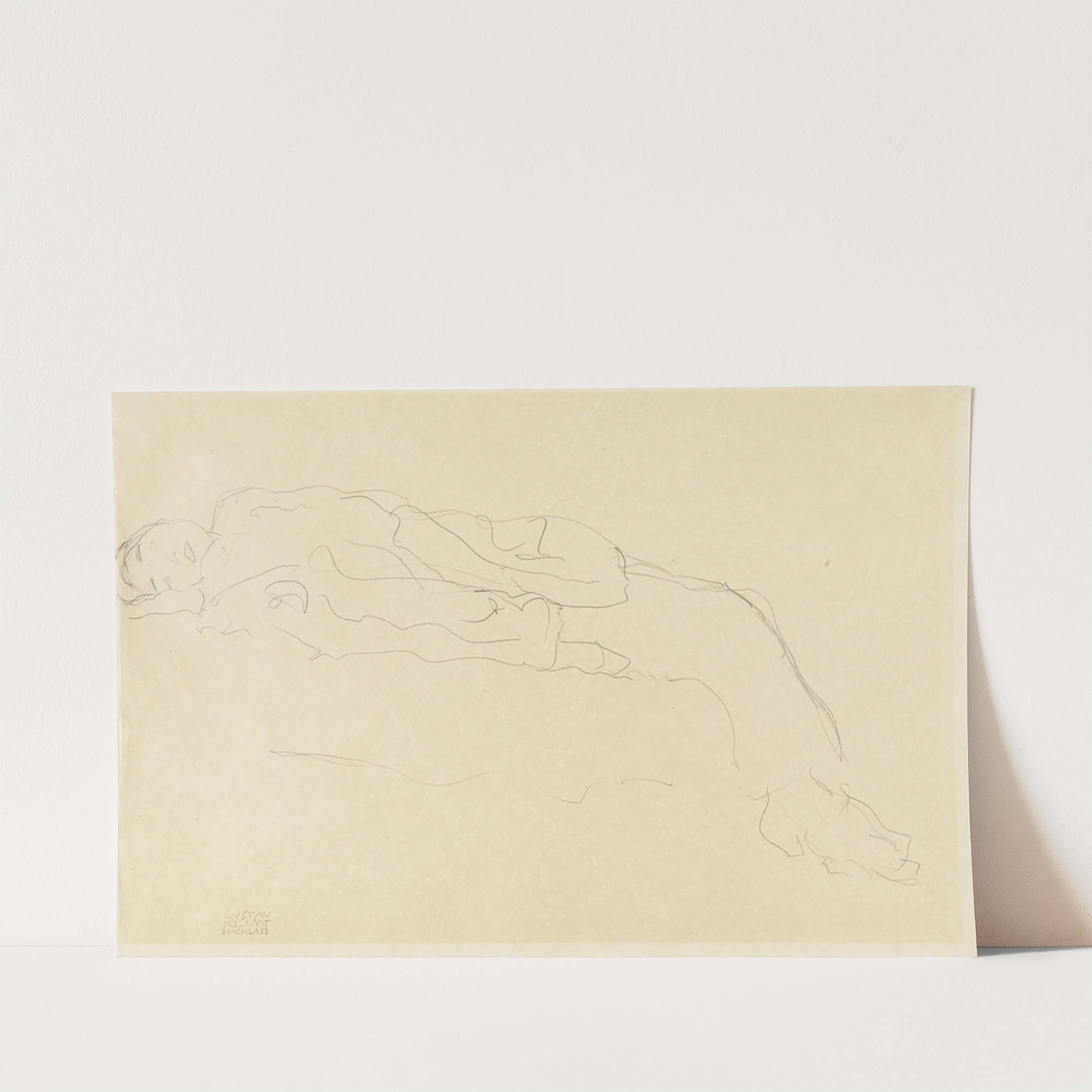 Auf einem Sofa liegende Frau by Gustav Klimt - Wall Art Print