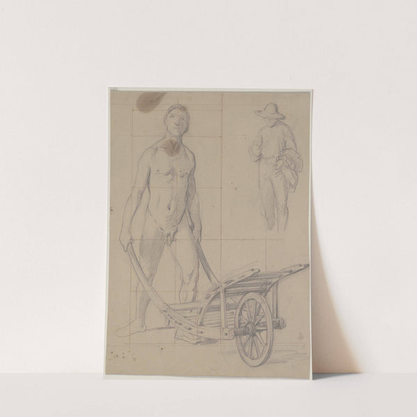 Studienblatt; Männlicher Akt mit Schubkarren, stehender Bauer by Jakob Becker