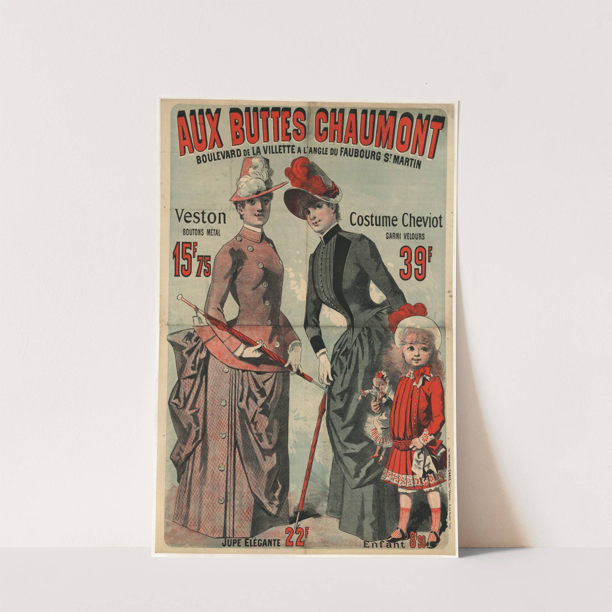 Aux Buttes Chaumont. Veston boutons métal 15f.75 – Costume cheviot garni velours (1886) by Jules Chéret - Wall Art Print