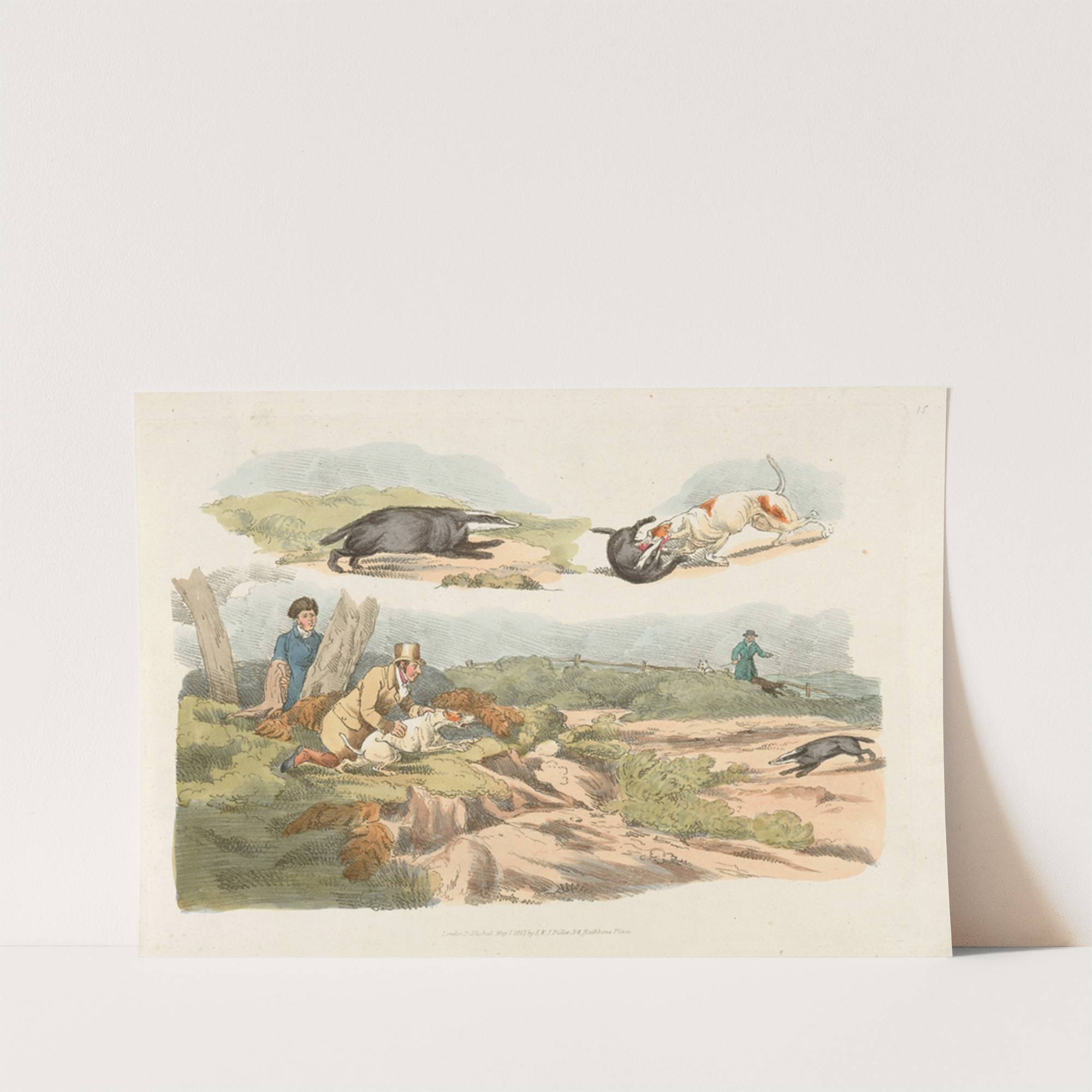 Badger hunting; dogs chasing and attacking badgers by Henry Thomas Alken - Wall Art Print