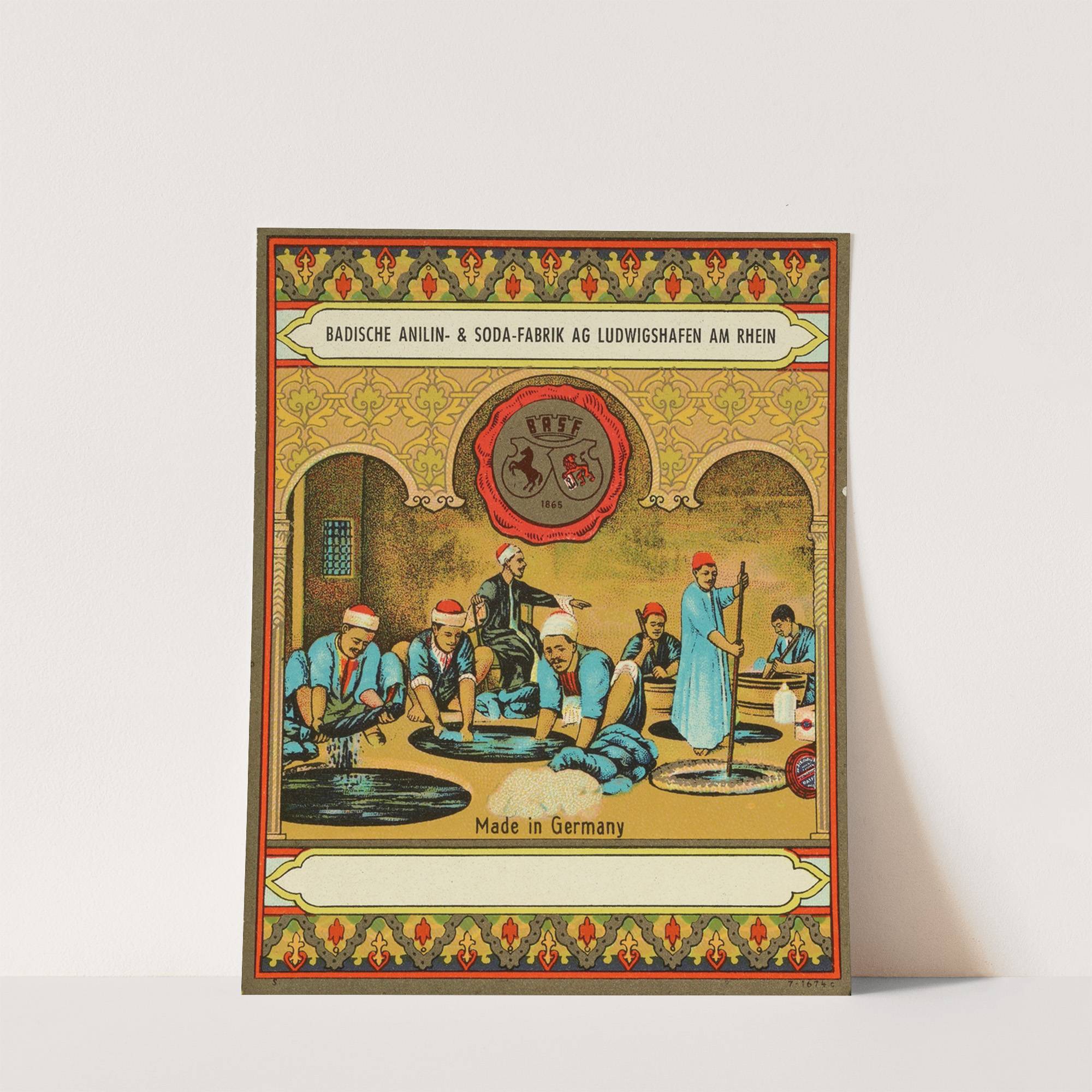 Badische Anilin & Soda-Fabrik dye label with indigo dye workers by Badische Anilin & Soda-Fabrik - Wall Art Print