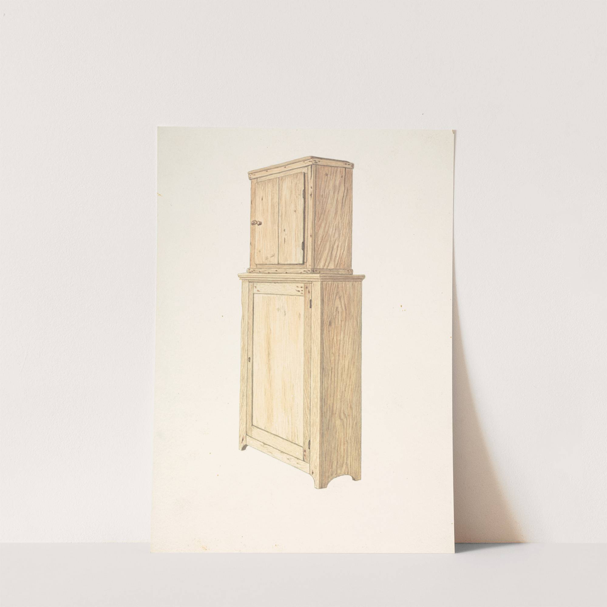 Introducing "Baker's Cabinet" – a beautifully crafted piece of artwork that captures the timeless elegance of classic wooden furniture. This digital illustration showcases an upright cabinet with distinct rustic charm, perfectly detailed in shades of warm beige and light brown....