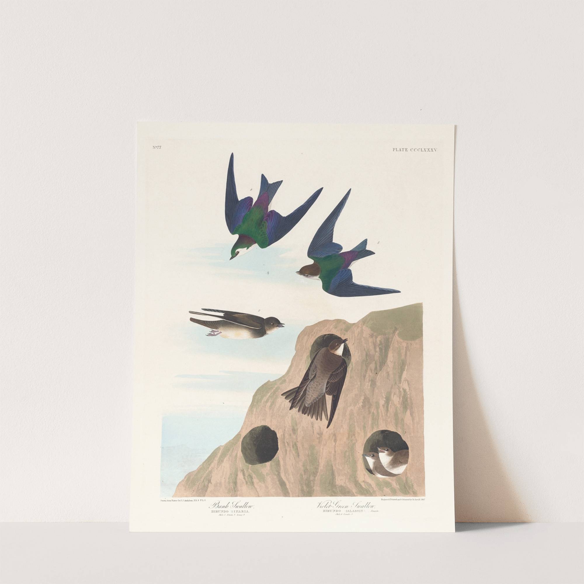 Bank swallow. Violet-green swallow by John James Audubon  - Wall Art Print
