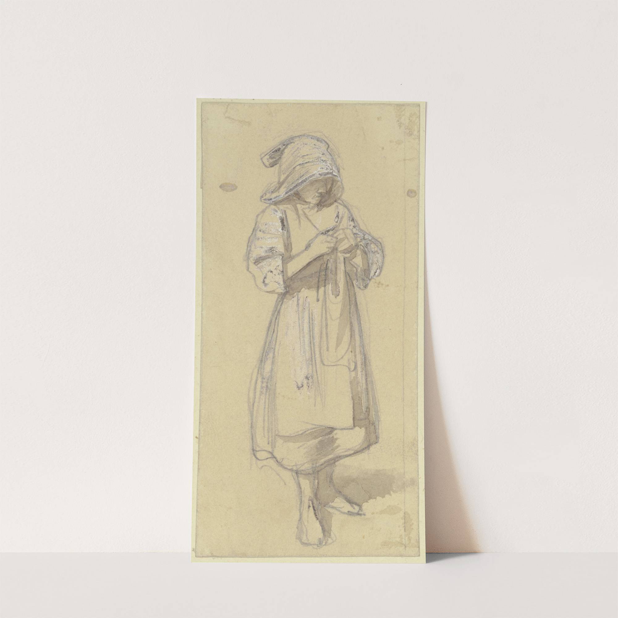 Barfüßiges Mädchen, strickend by Jakob Fürchtegott Dielmann - Wall Art Print