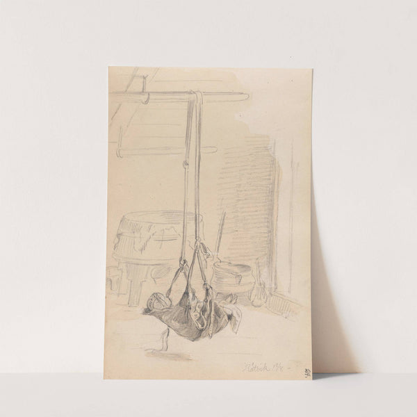 This captivating pencil sketch captures the rustic charm of a classic barn interior. The artist has meticulously rendered the scene in monochrome, with fine, delicate lines that bring out the textures and details of the environment.At the center, a simple...