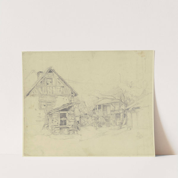 Bauernhof, links ein Ziehbrunnen, im Hintergrund an einer Treppe eine Gruppe Kinder by Jakob Fürchtegott Dielmann - Wall Art Print