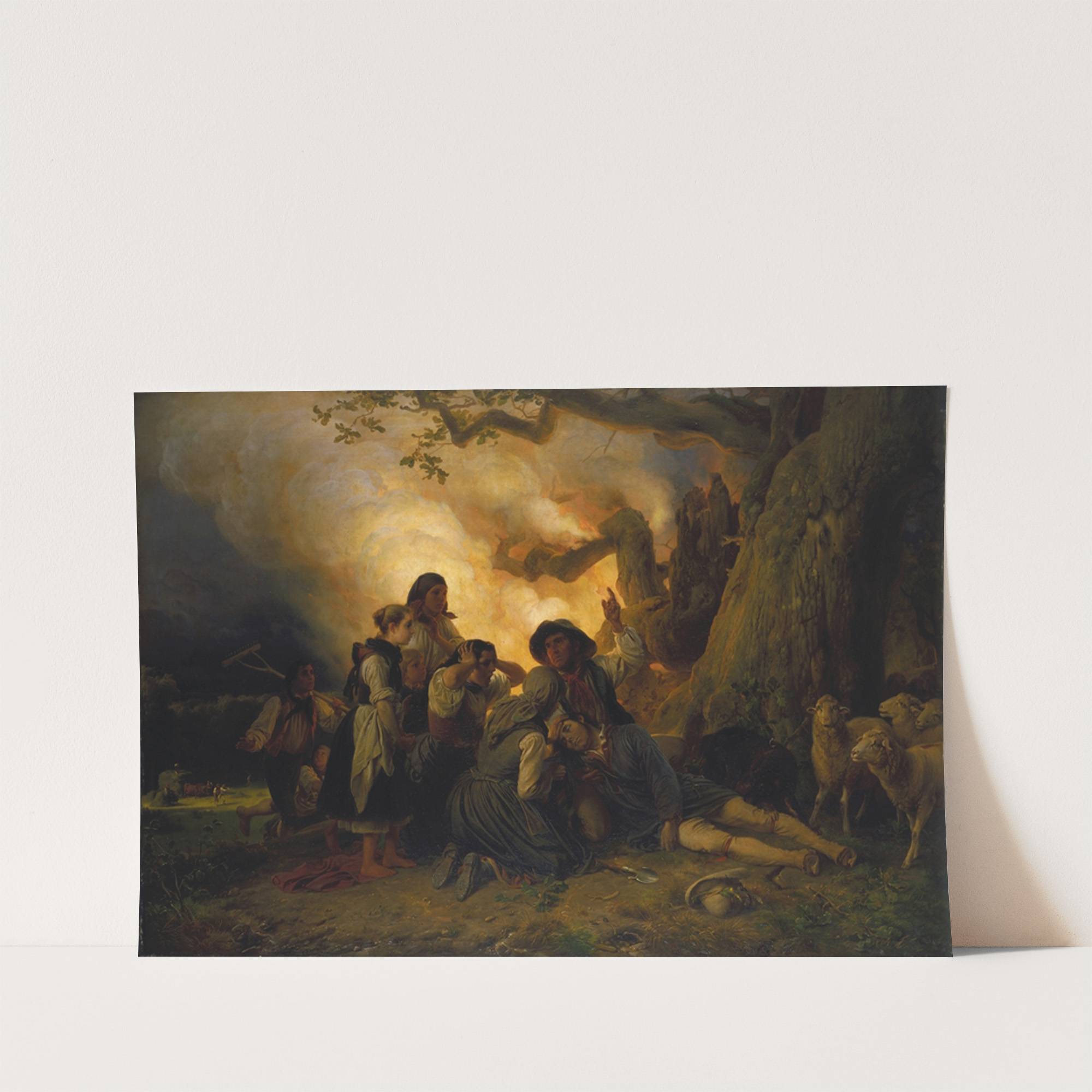 Bauernmädchen mit geschultertem Rechen by Jakob Becker - Wall Art Print