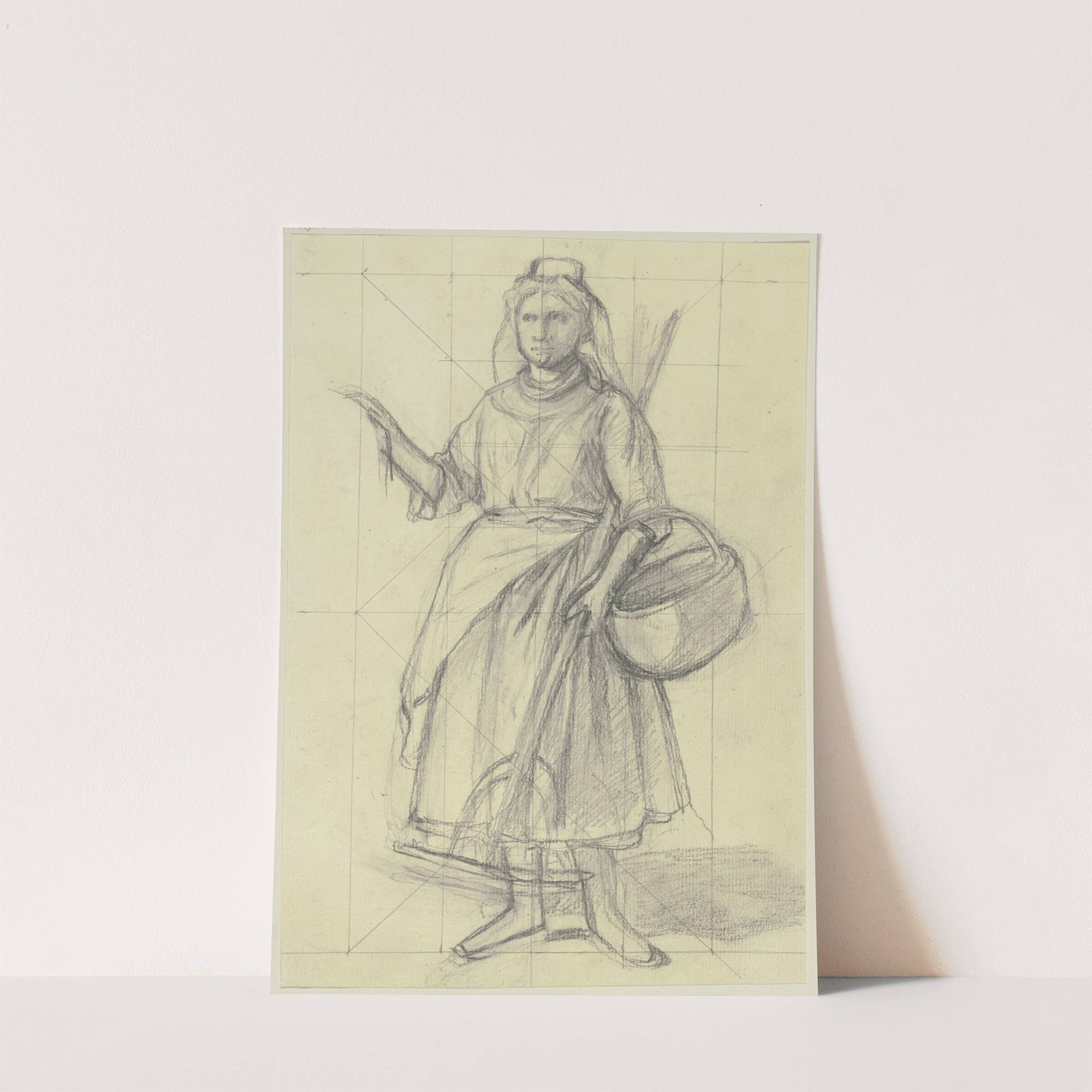 Bauernmädchen mit Rechen und Korb by Jakob Becker - Wall Art Print