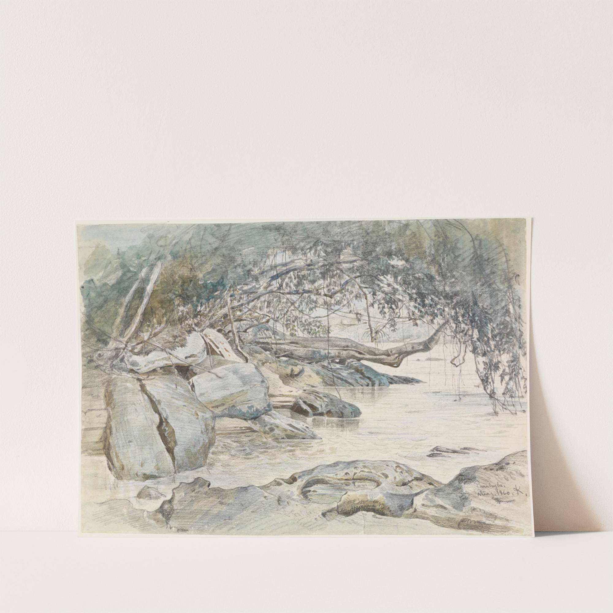 Baumbestandenes Felsenufer am Parahyba by Ferdinand Keller - Wall Art Print