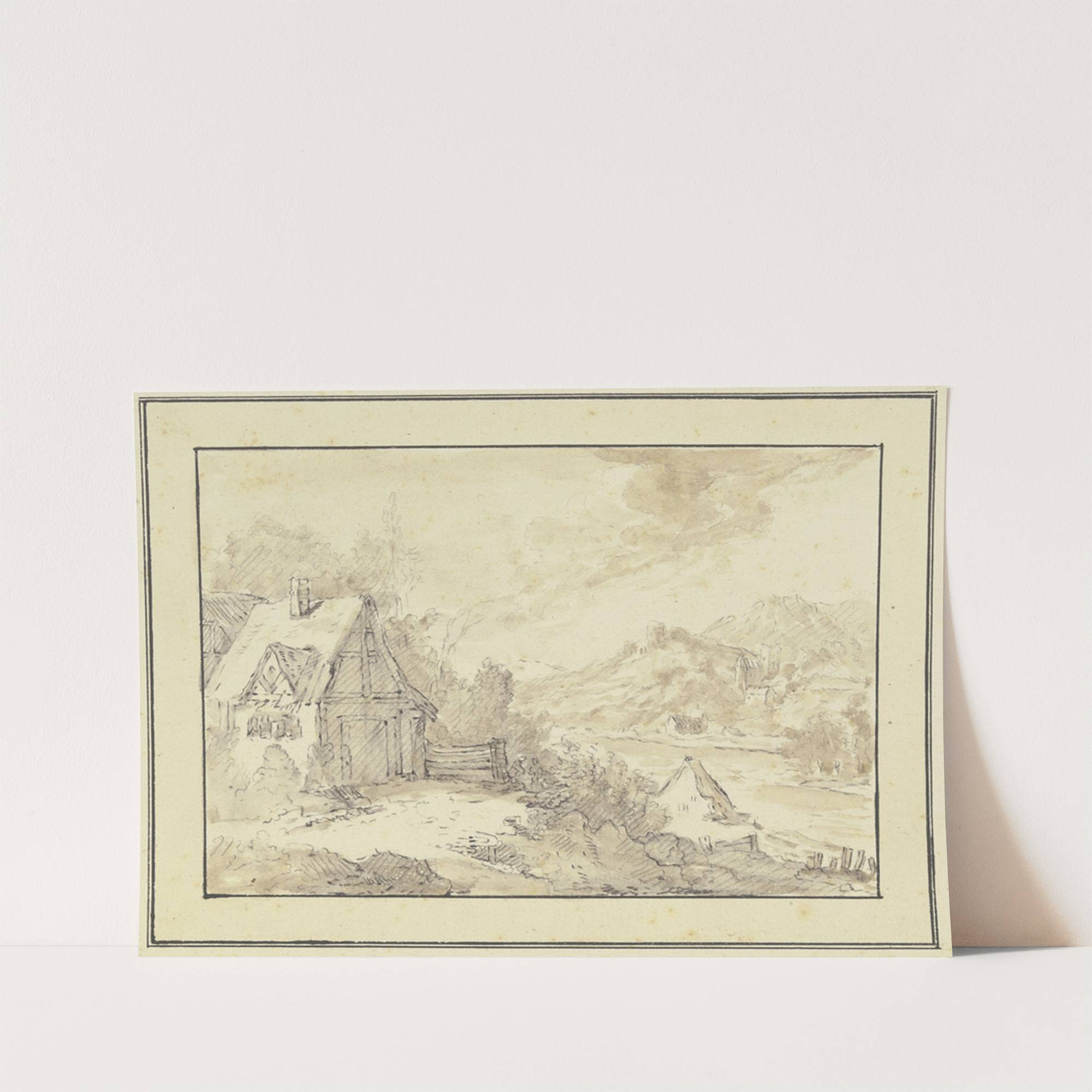 Bergiges Flußufer mit Burgen und Häusern by Franz Schütz - Wall Art Print