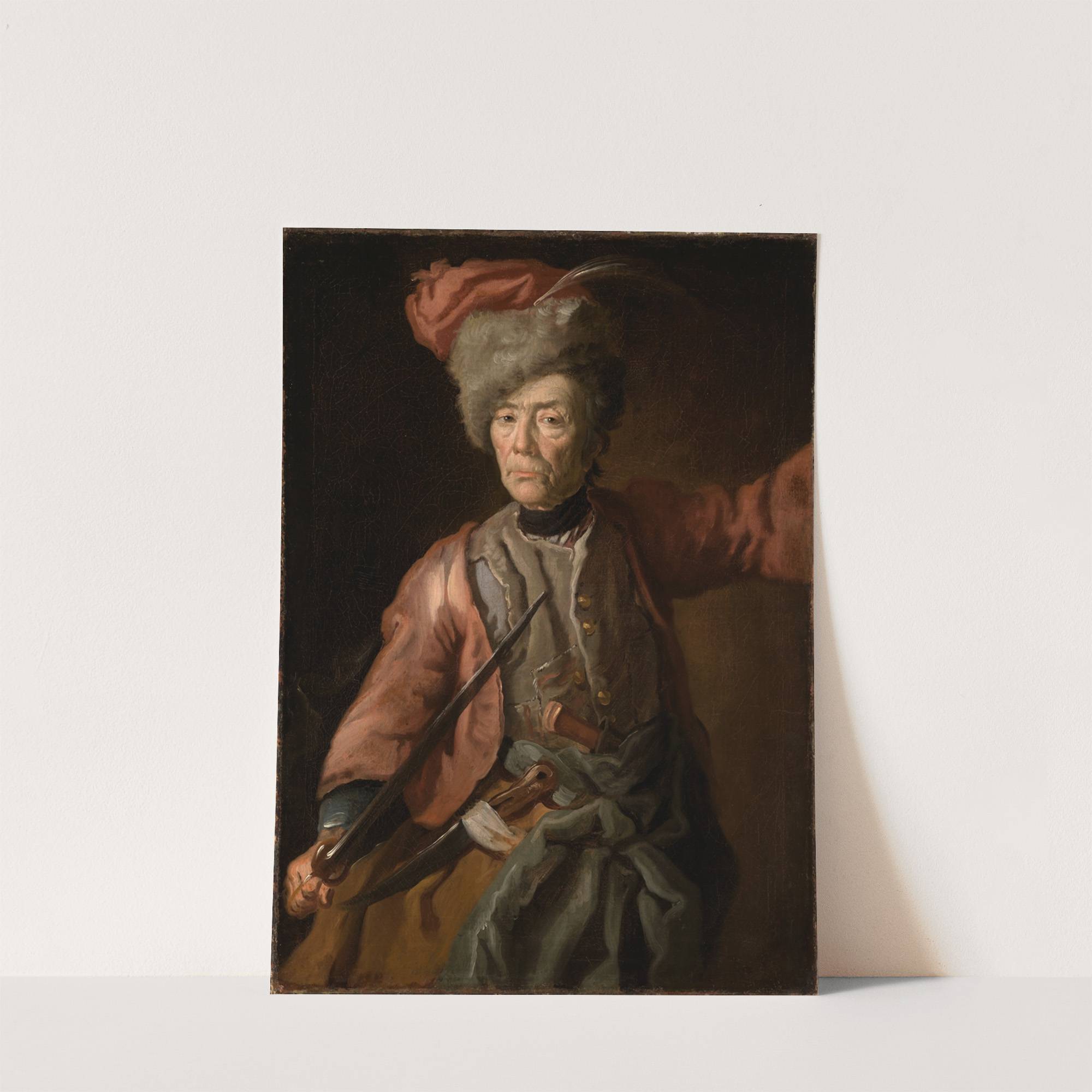 Bildnis einer älteren Frau in Husarenuniform by Johann Georg Dathan - Wall Art Print