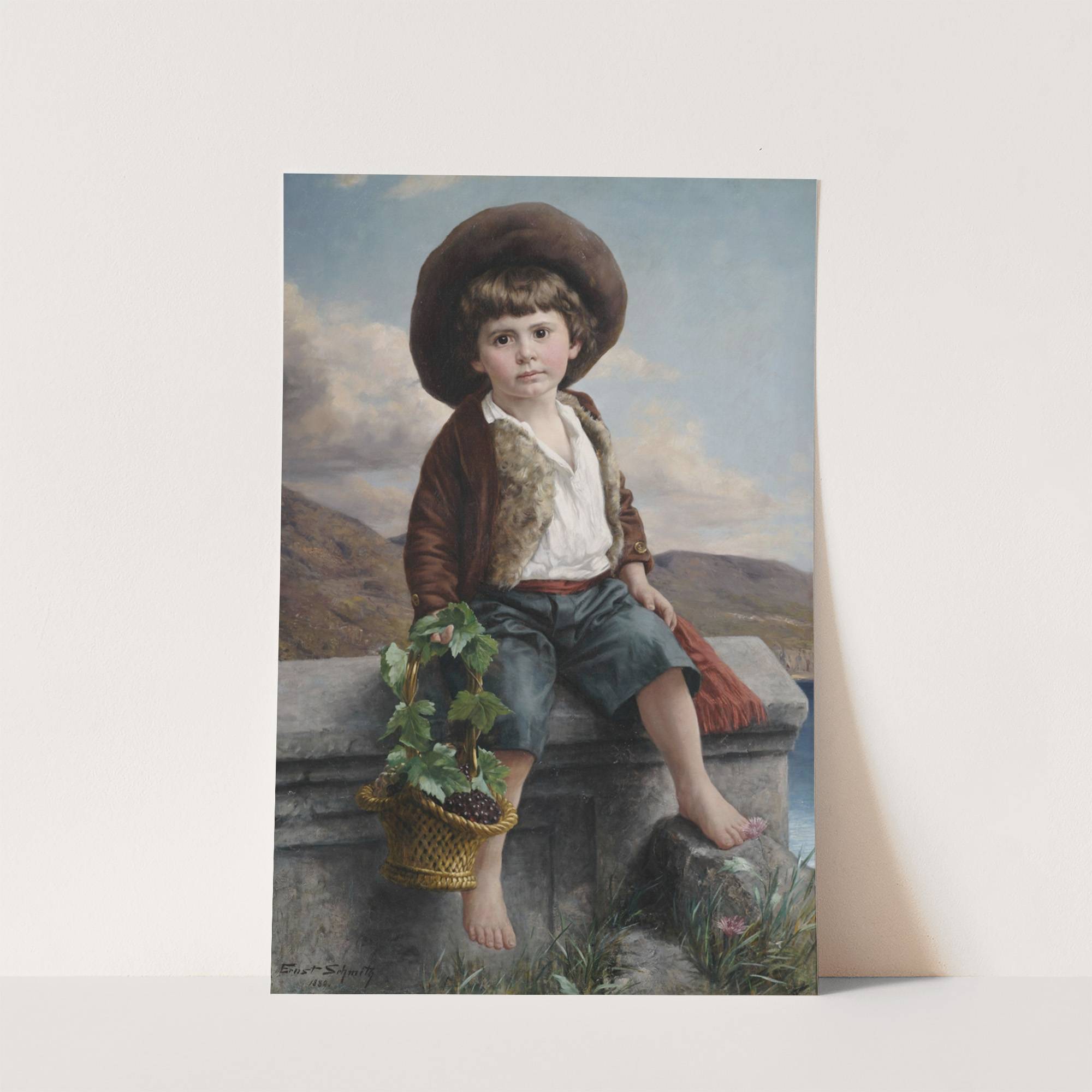 Bildnis eines Bauernjungen mit einem Traubenkorb auf einer Brüstung by Ernst Schmitz - Wall Art Print