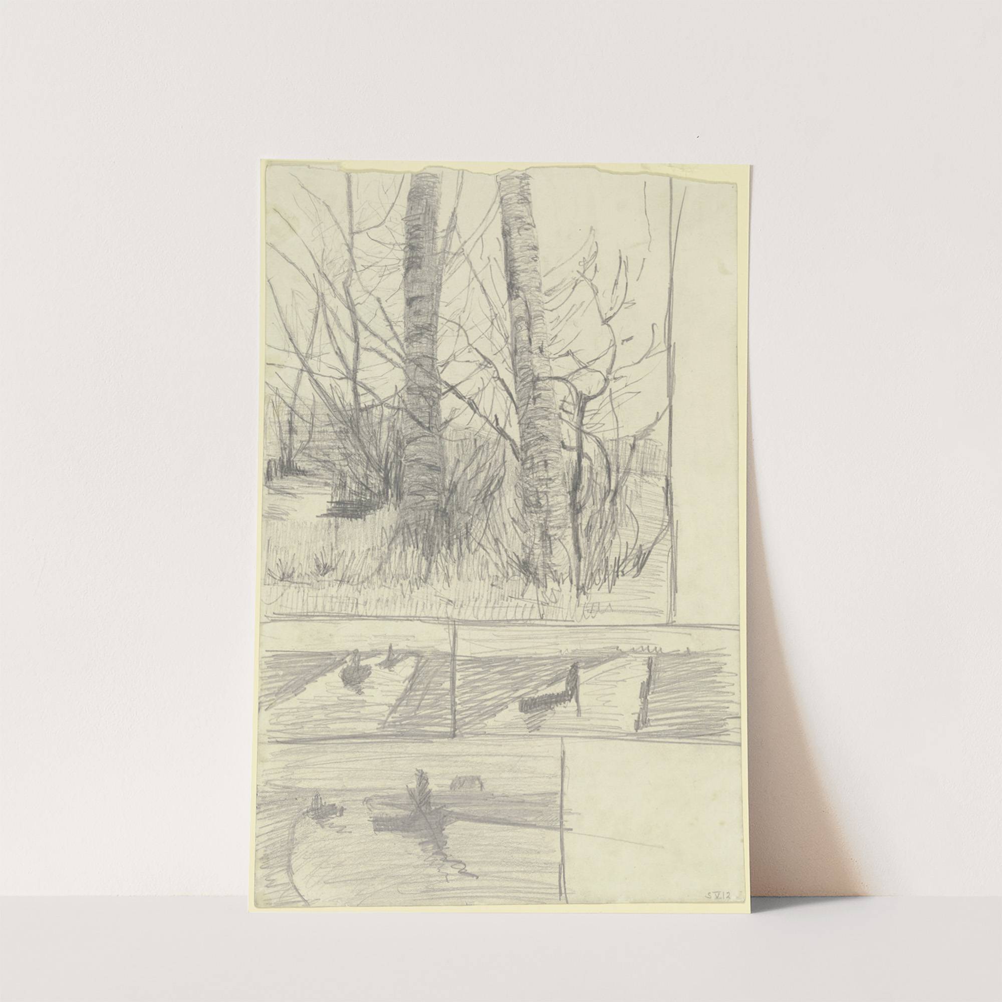 Birkenstämme ; Drei Studien eines Moorkanals mit Kähnen by Paula Modersohn-Becker  - Wall Art Print