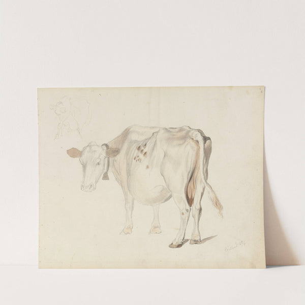 This exquisite print captures the simplicity and beauty of rural life with "Sauland" by Adolph Tidmand, beautifully illustrated in a minimalist watercolor style. The image features a serene cow standing in profile, its gentle posture highlighting its calm nature. The...