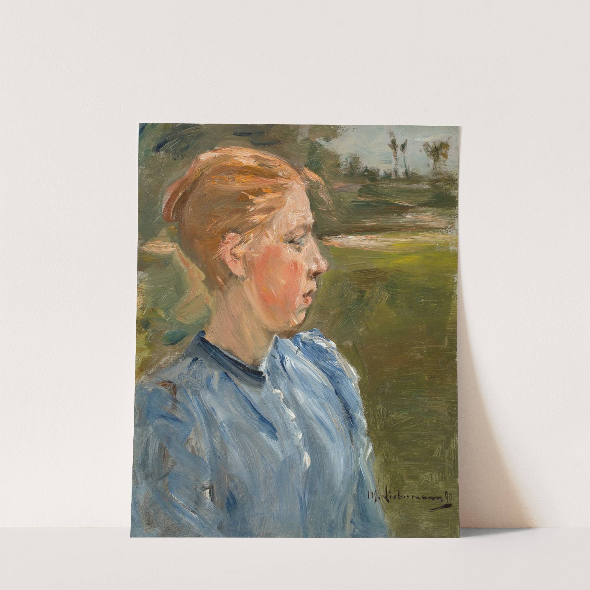 Blaues Mädchen in Landschaft – Bauernmädchen by Max Liebermann - Wall Art Print