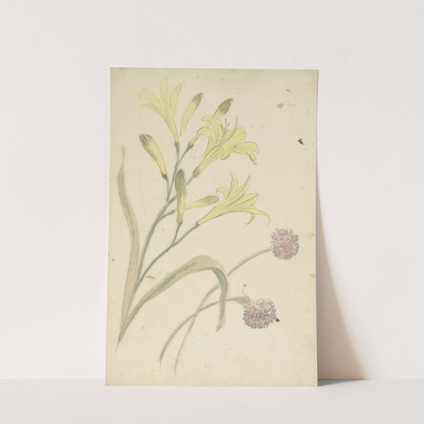 Bloemstudies van een gele lelie en een bloeiende ui (1677 - 1755) by Elias van Nijmegen - Wall Art Print