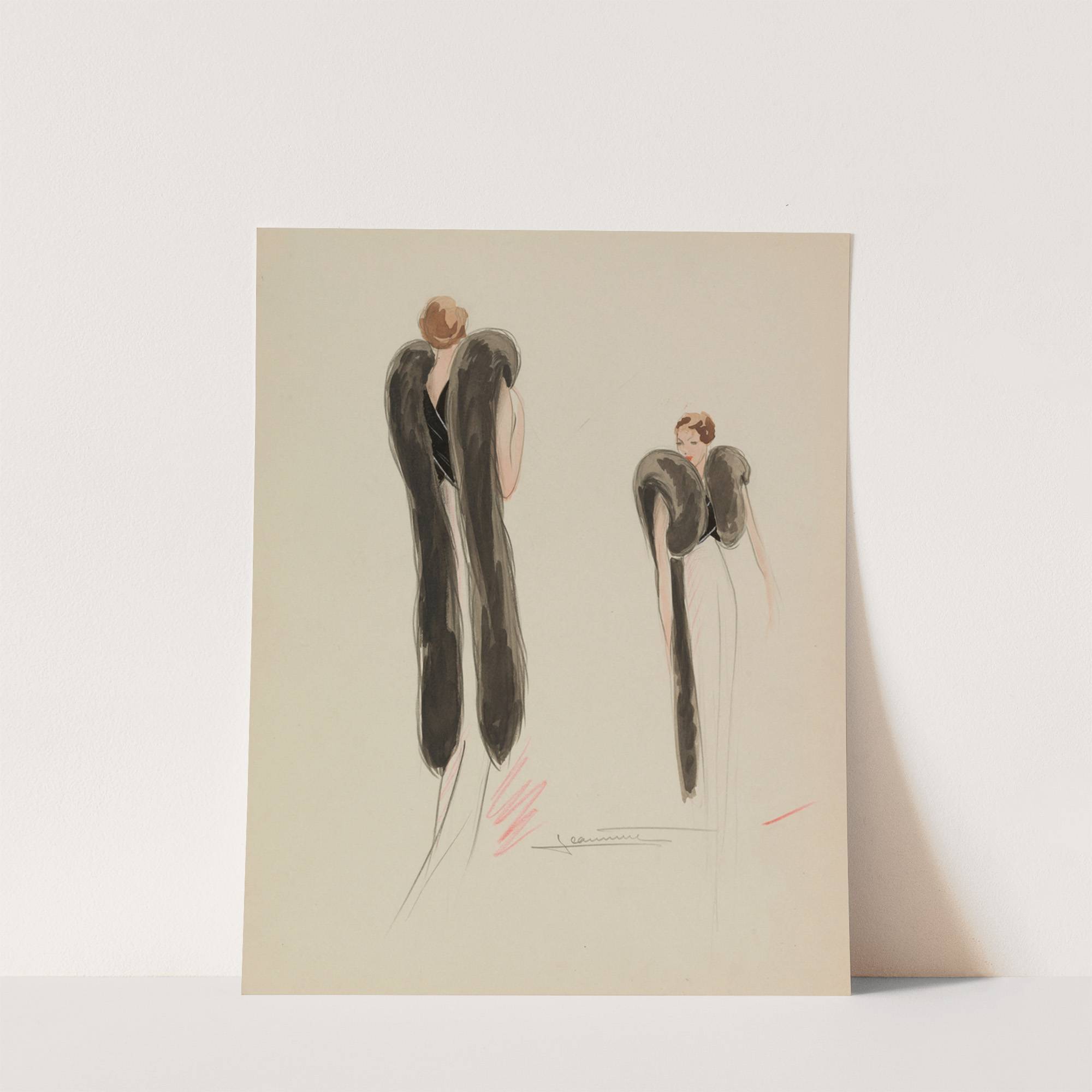 Boléro noir avec 2 longues bandes de fourrure noire dans le dos (1938) by Jeannette - Wall Art Print