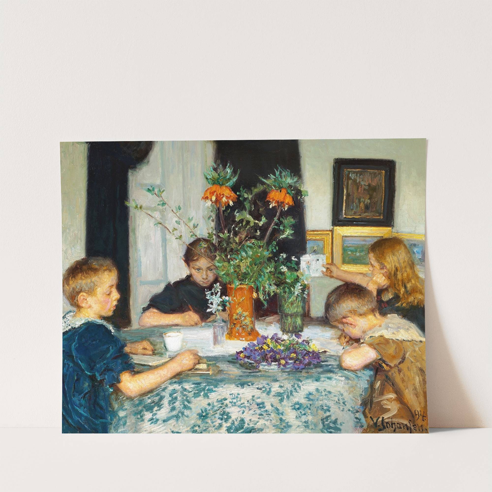 Børn, der male Foraarsblomster by Viggo Johansen - Wall Art Print