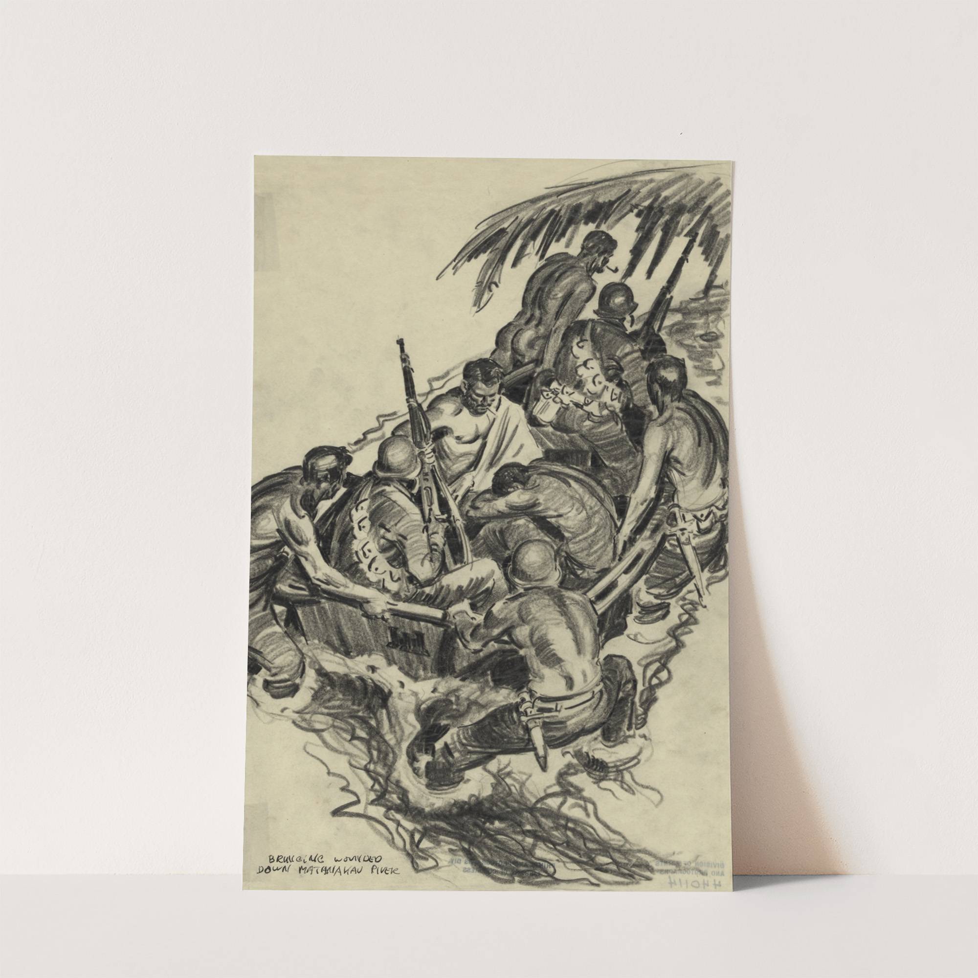 Bringing wounded down Matanakau [i.e. Mataniko] River by Howard Brodie - Wall Art Print