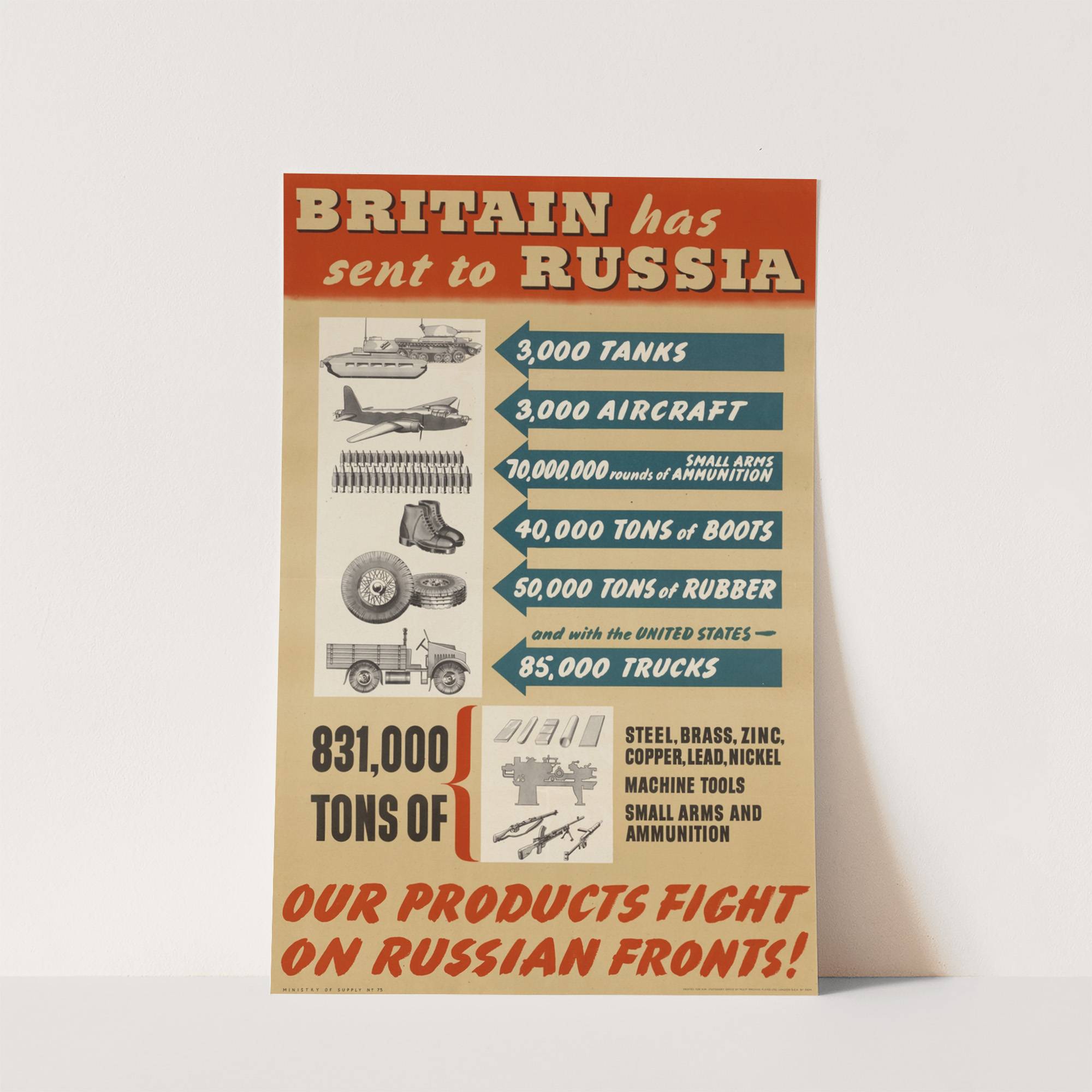Britain Has Sent to Russia…Our Products Fight on Russian Fronts by Abram Games - Wall Art Print