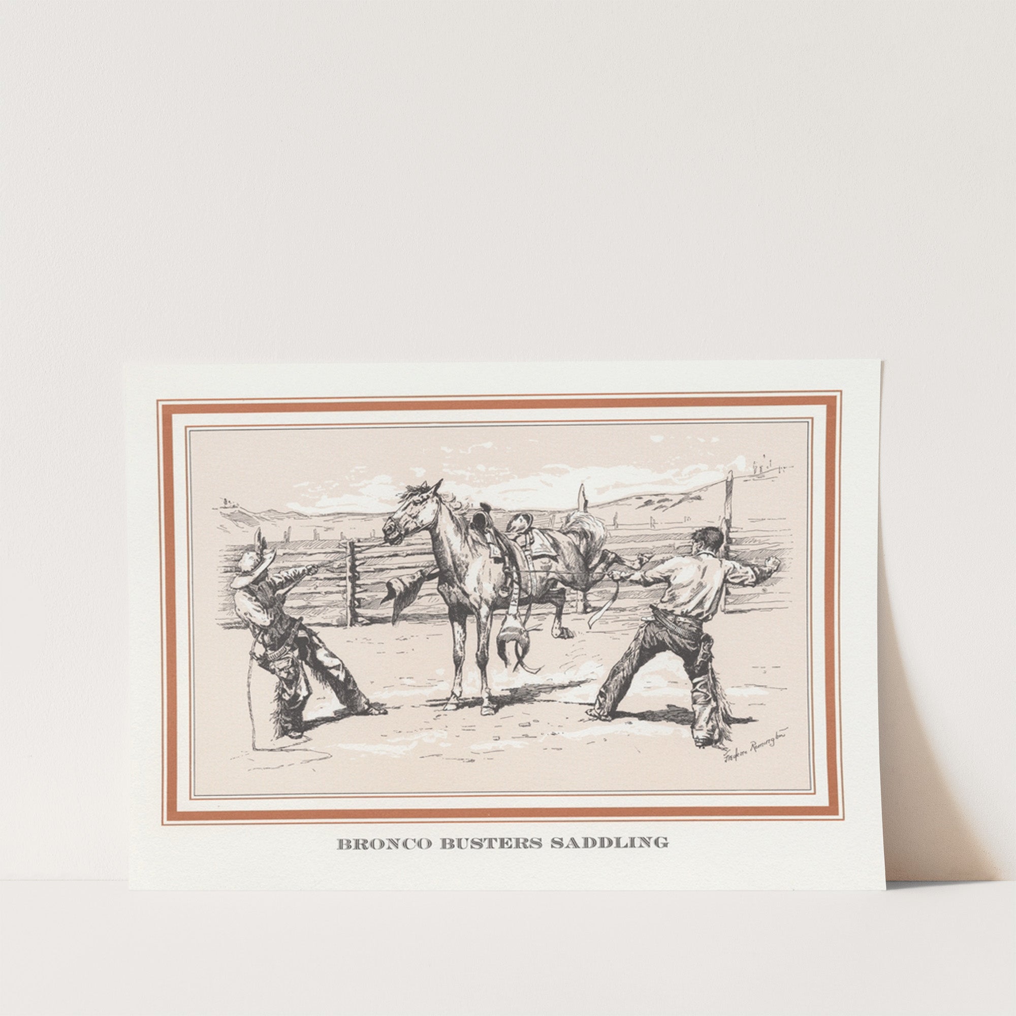 Bronco busters saddling by Frederic Remington - Wall Art Print