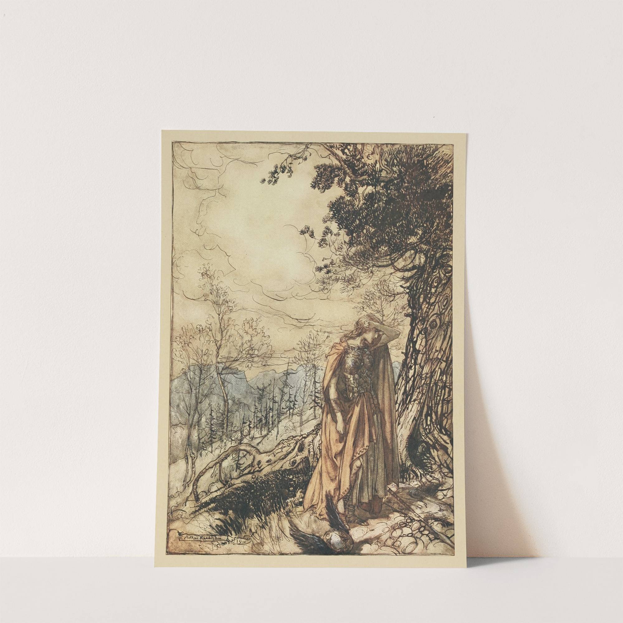 Brunnhilde stands for a long time dazed and alarmed by Arthur Rackham - Wall Art Print