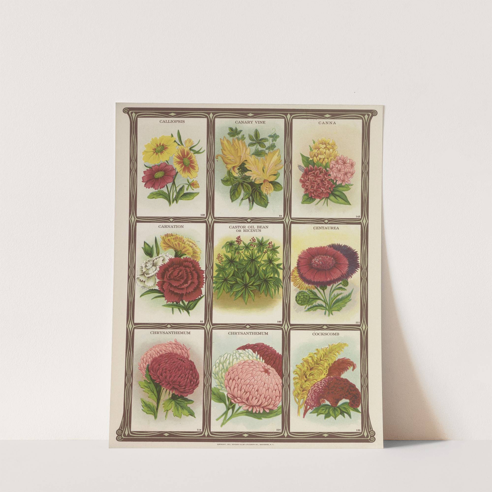 Calliopsis, Canary vine, Canna, Carnation….. (1921) by Genesee Valley Lithograph Co. - Wall Art Print