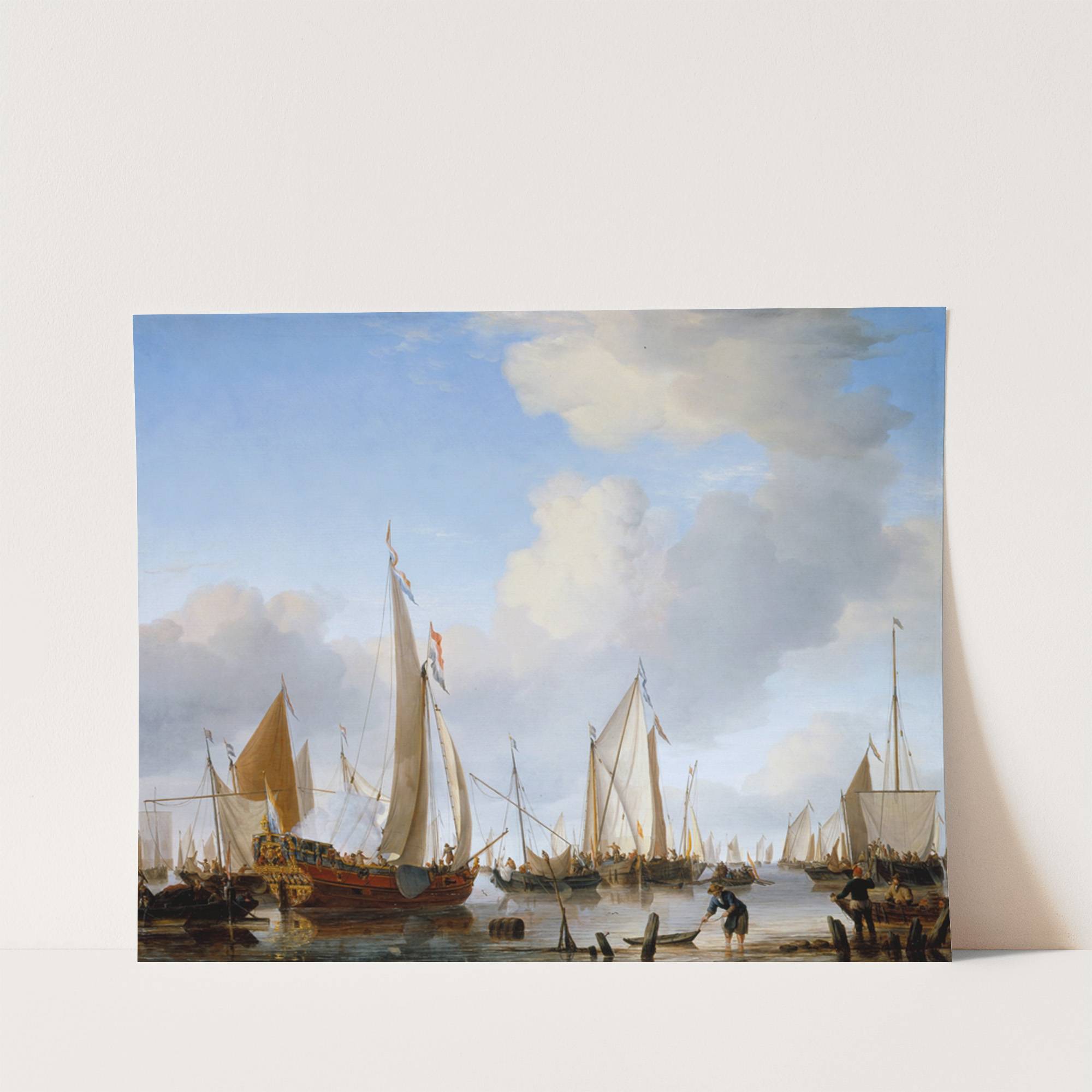 Calm- A States Yacht under Sail close to the Shore with many other Vessels by Willem van de Velde the Younger - Wall Art Print