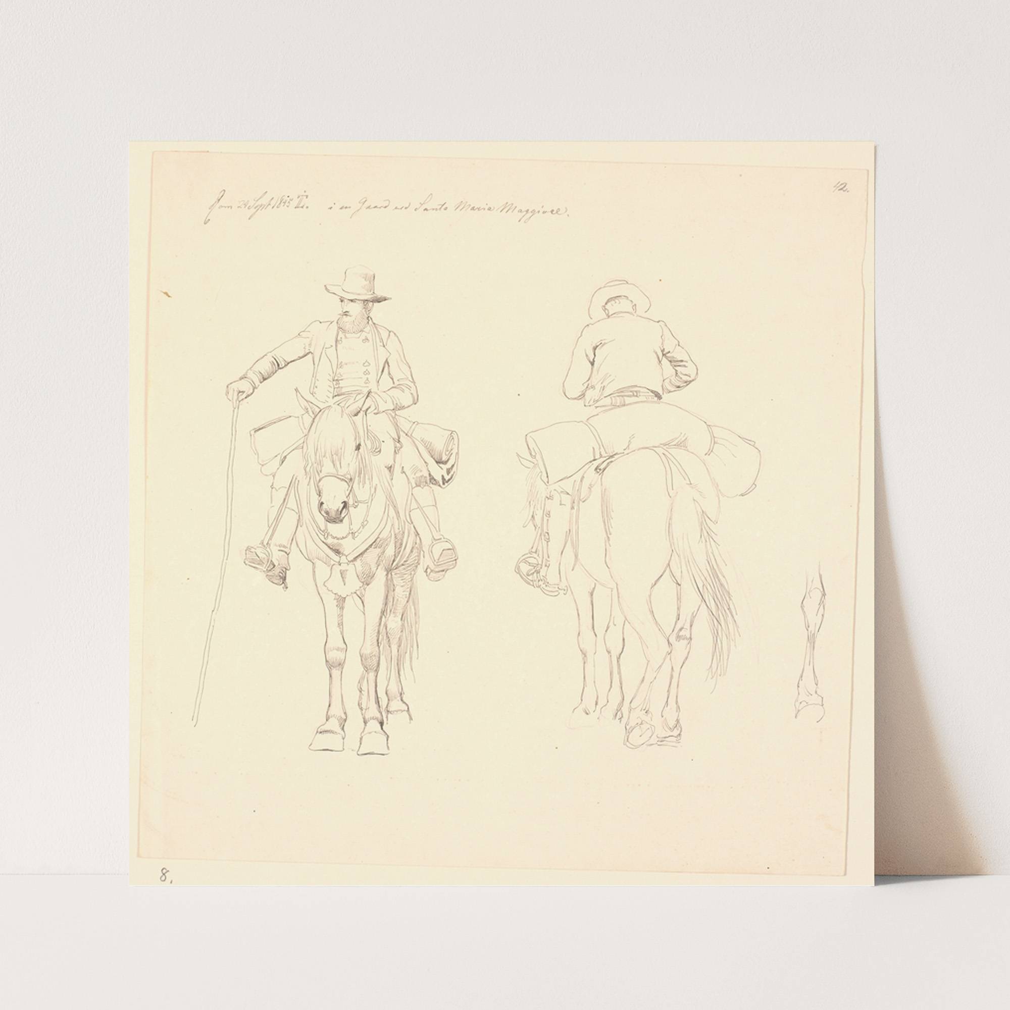 Campagnol til hest, set forfra og bagfra, samt studie af en hests bagben by Johan Thomas Lundbye - Wall Art Print