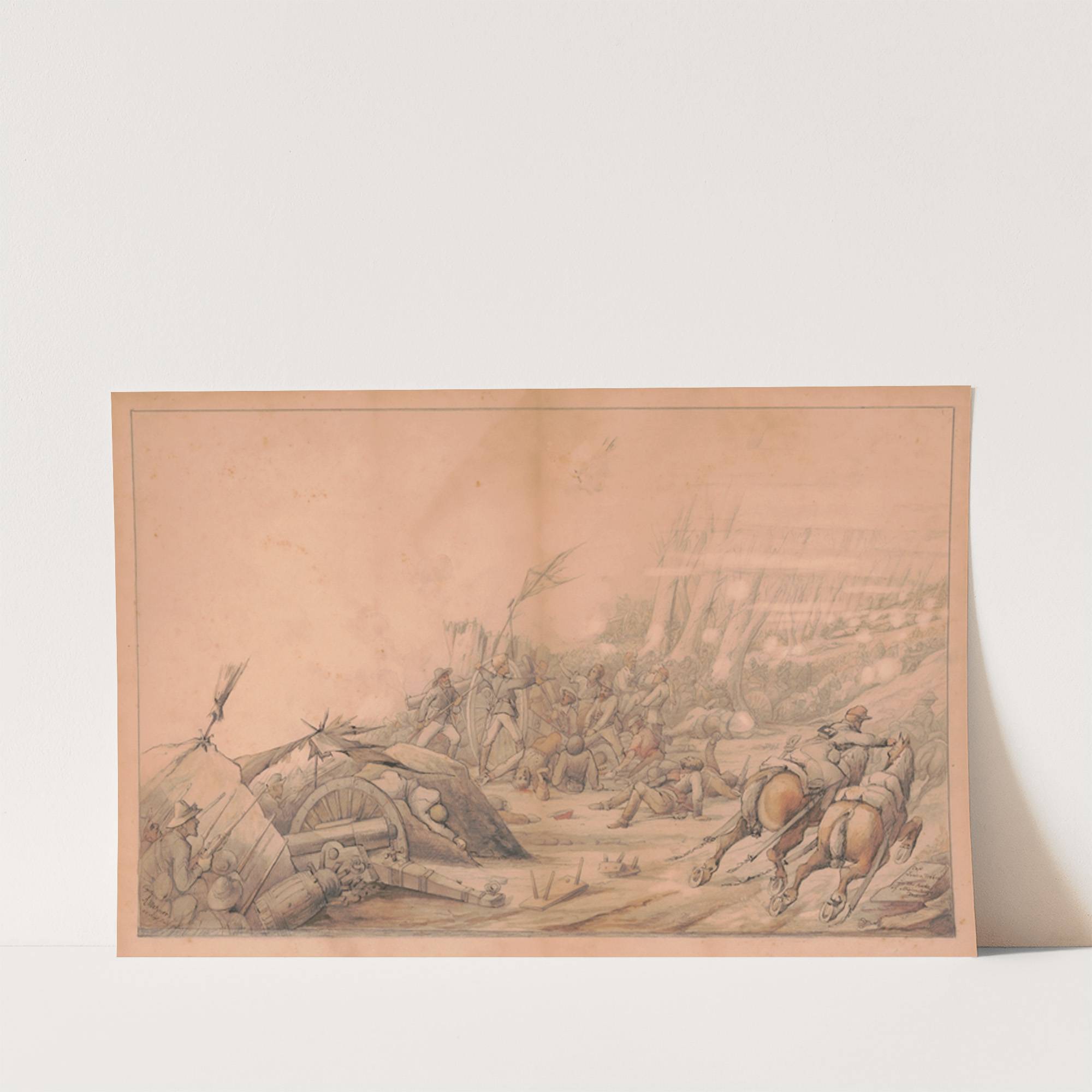 This captivating print titled "Capt. Louis von Trebra at the Battle of Missionary Ridge, TN." is an intricate and dynamic illustration that brings a historical battle scene to life. The artwork showcases detailed line work with a sepia-toned palette, lending...