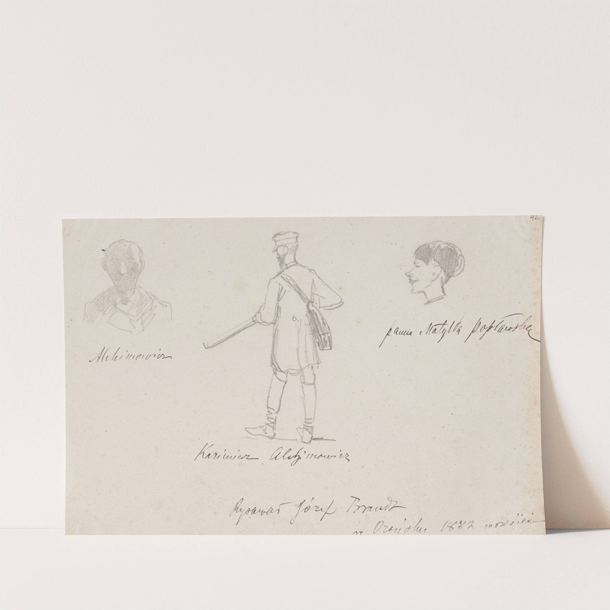 Caricatures of guests in Orońsko; Kazimierz Alchimowicz twice and Matylda Popławska (1882) by Jozef Brandt - Wall Art Print