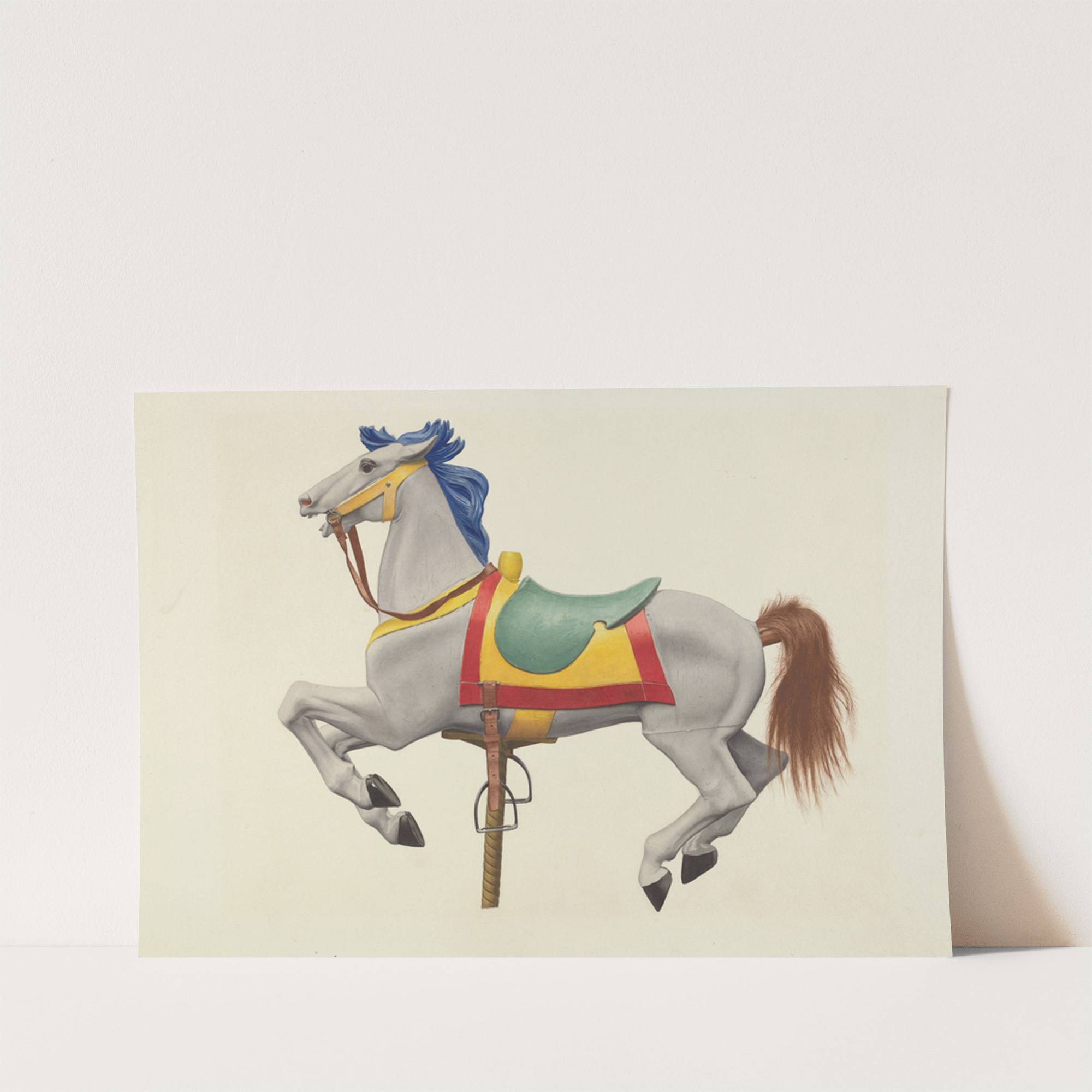 Introducing "Carousel Horse," a vibrant and dynamic piece of equine art that captures the essence of classic carousel horses. This beautifully detailed painting features a white horse in mid-gallop, its muscular form suggesting movement and energy. The horse is adorned...
