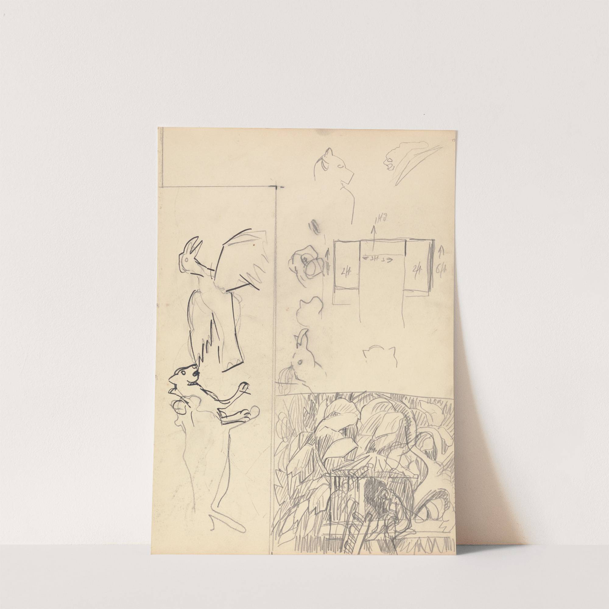 Cave of the Golden Calf; Studies of Tree Houses, Animals and Floor Plan by Spencer Frederick Gore - Wall Art Print