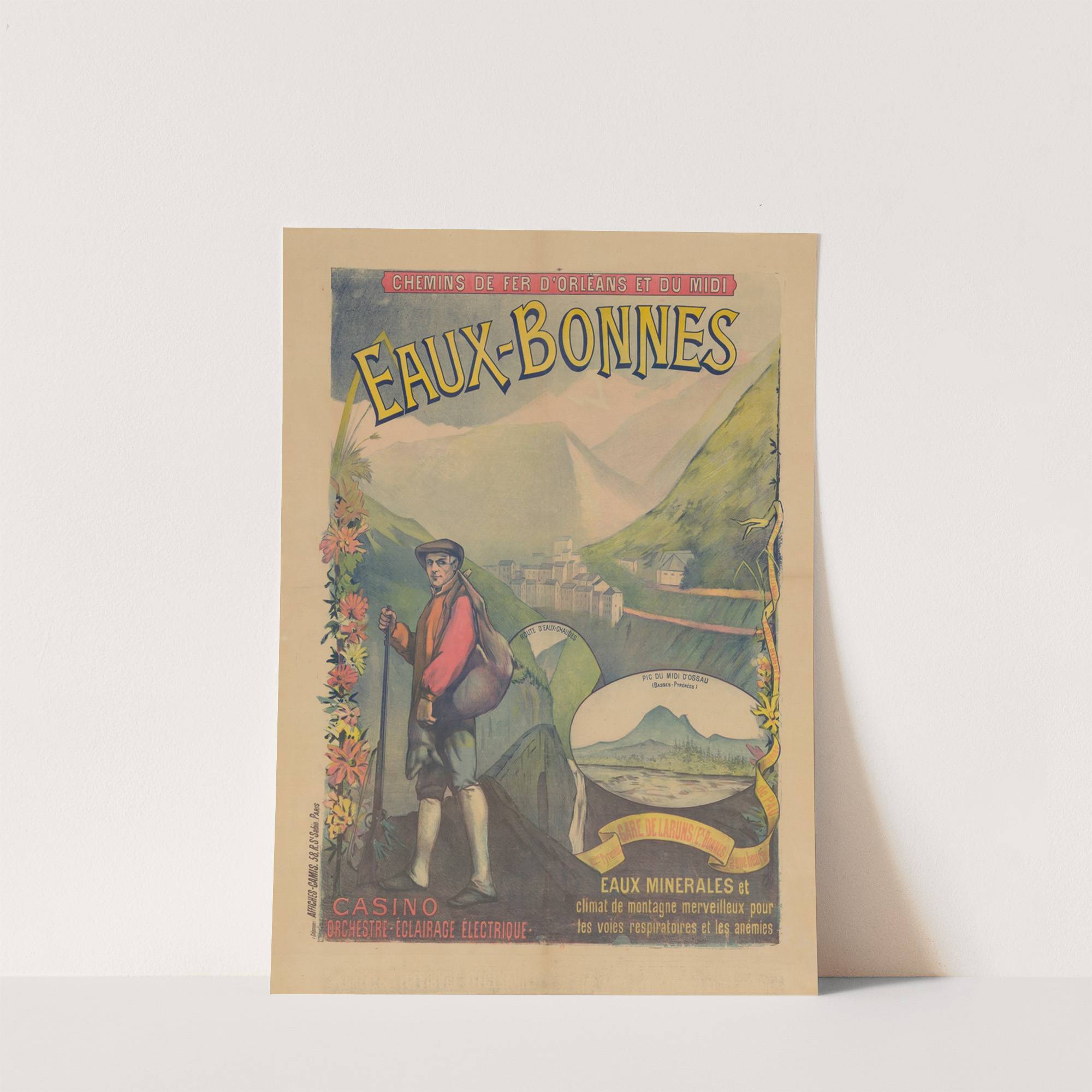 Chemins de Fer d’Orléans et du Midi. Eaux-Bonnes. Eaux minérales et climat de montagne. Casino (1892) by Imp. Camis - Wall Art Print
