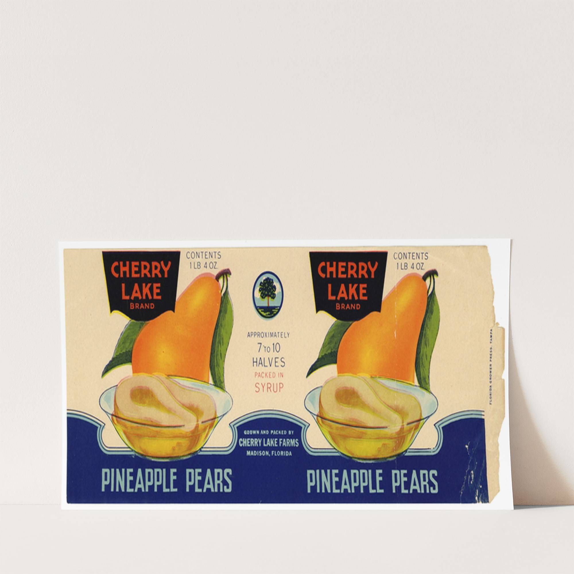 Cherry Lake Brand Pineapple Pears Label (1930-1950) - Wall Art Print