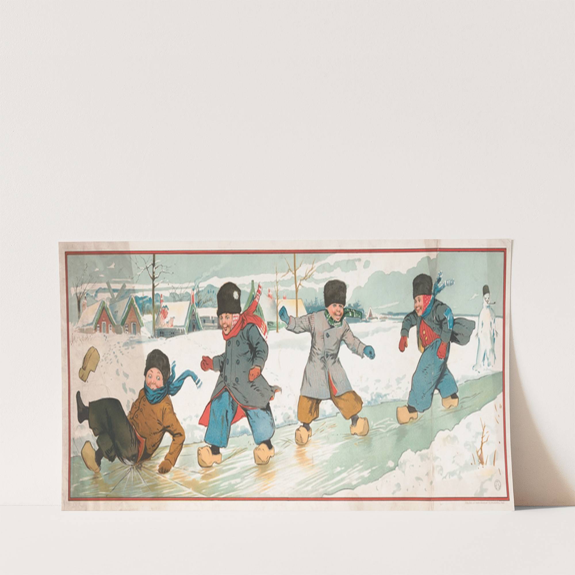 Children playing on the ice during winter by Taber Prang Art Co. - Wall Art Print