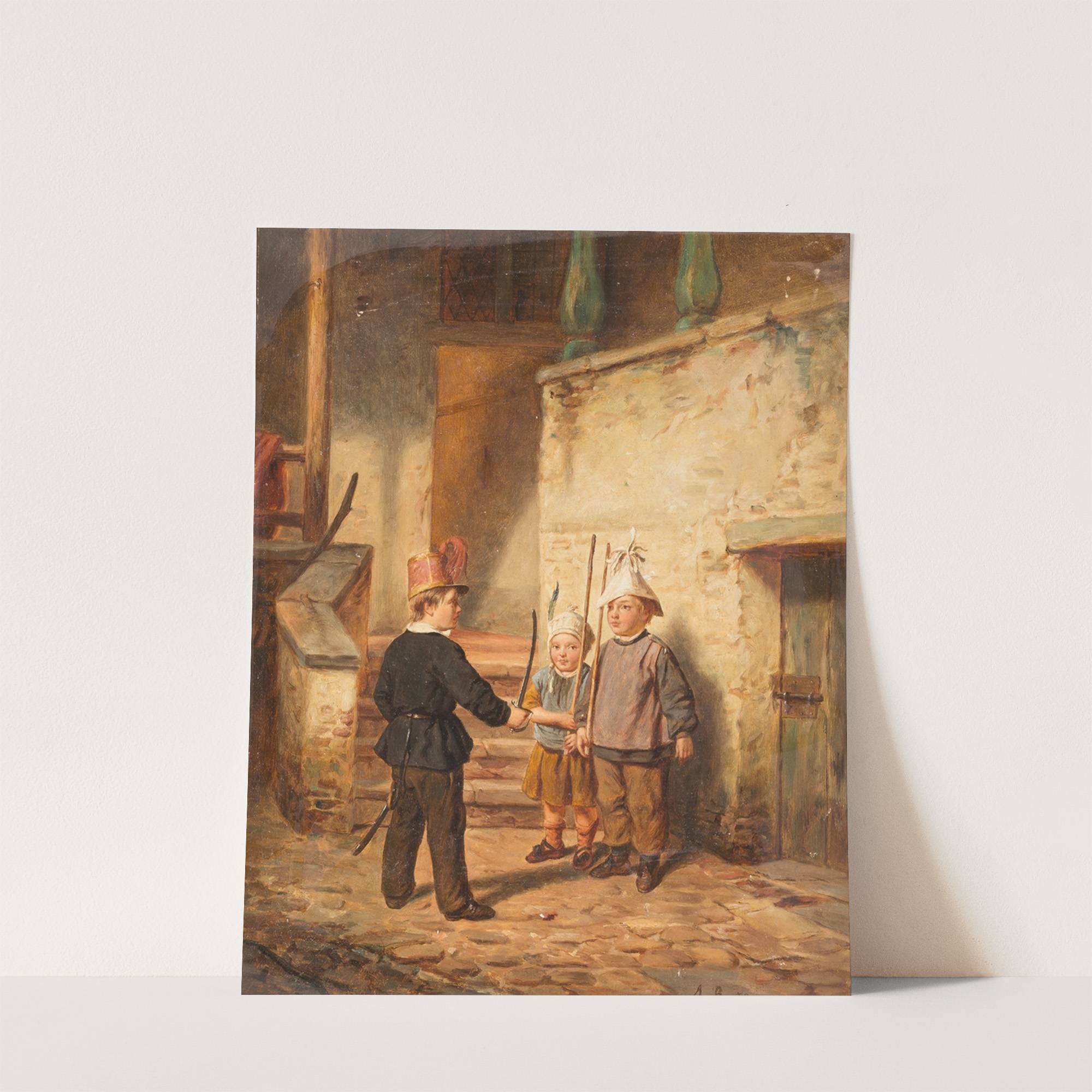 Children playing soldiers (1859) by Auguste Bachelin - Wall Art Print