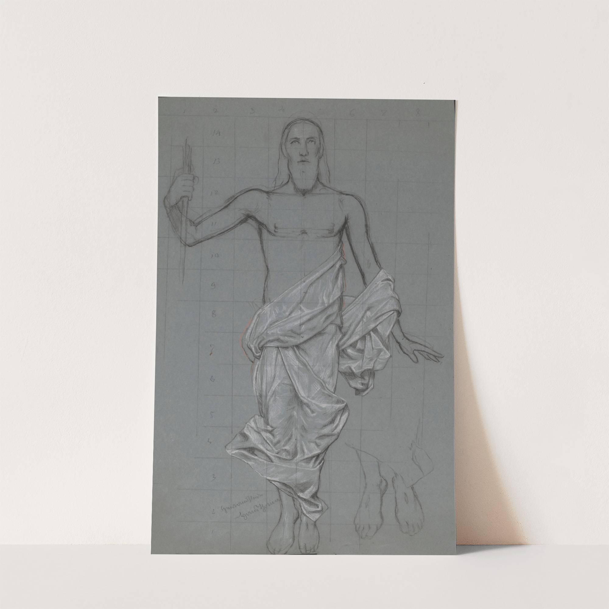 Christ from the ‘Resurrection’ Scene. Christ’s Feet Redrawn in the Bottom Right (1908) by Hans Thoma - Wall Art Print