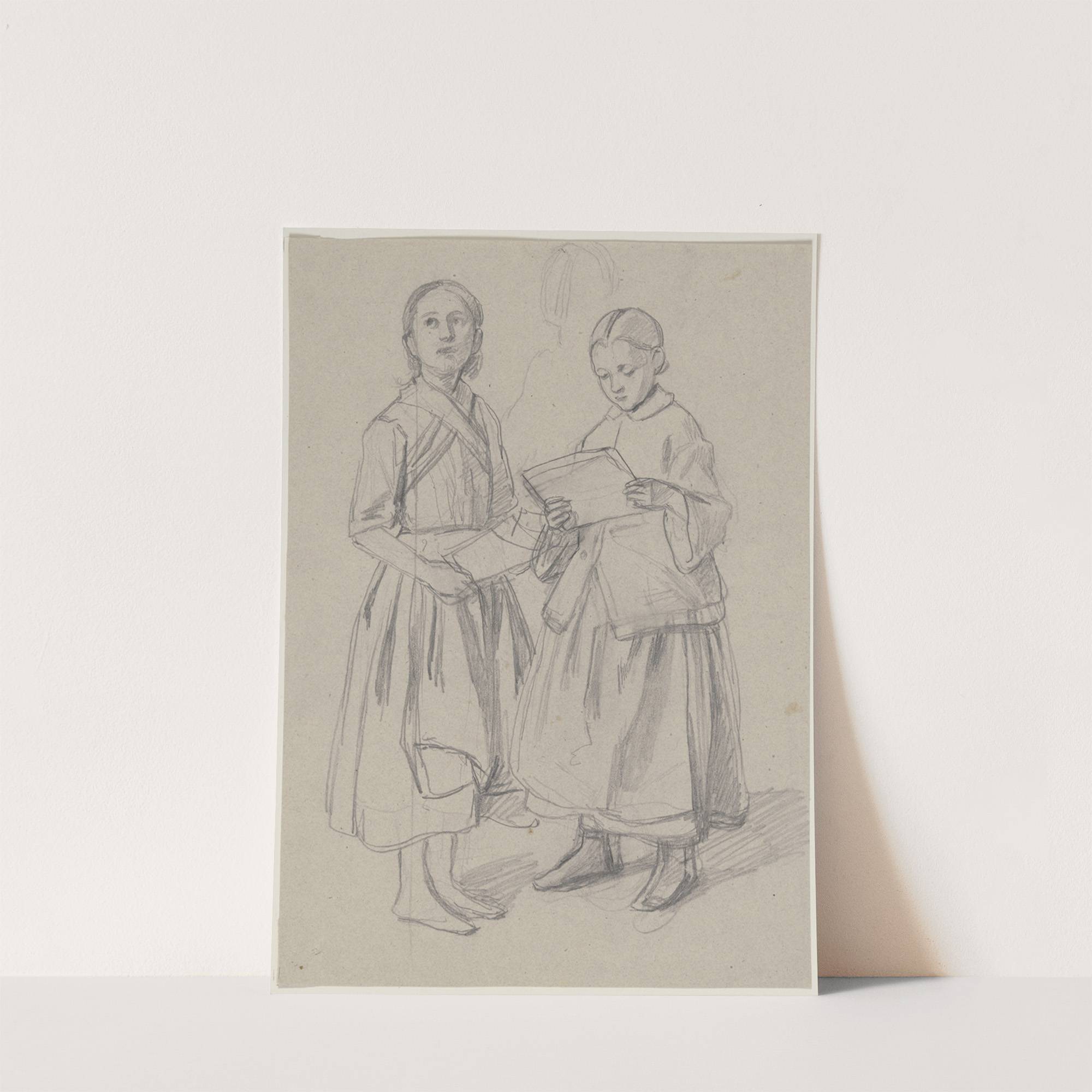Zwei vom Notenblatt singende Mädchen by Jakob Becker