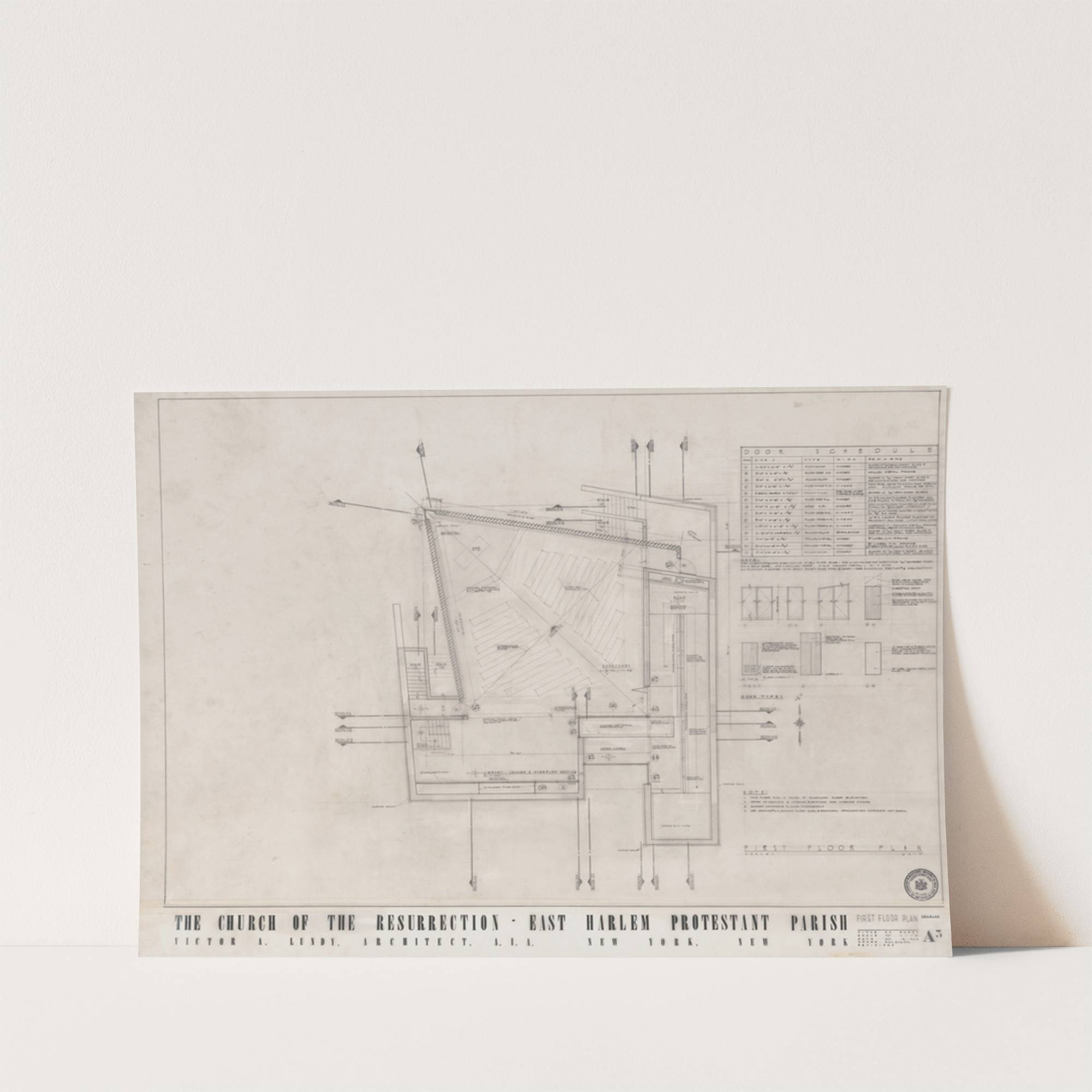 Church of the Resurrection, East Harlem, New York, First floor plan by Victor Alfred Lundy - Wall Art Print