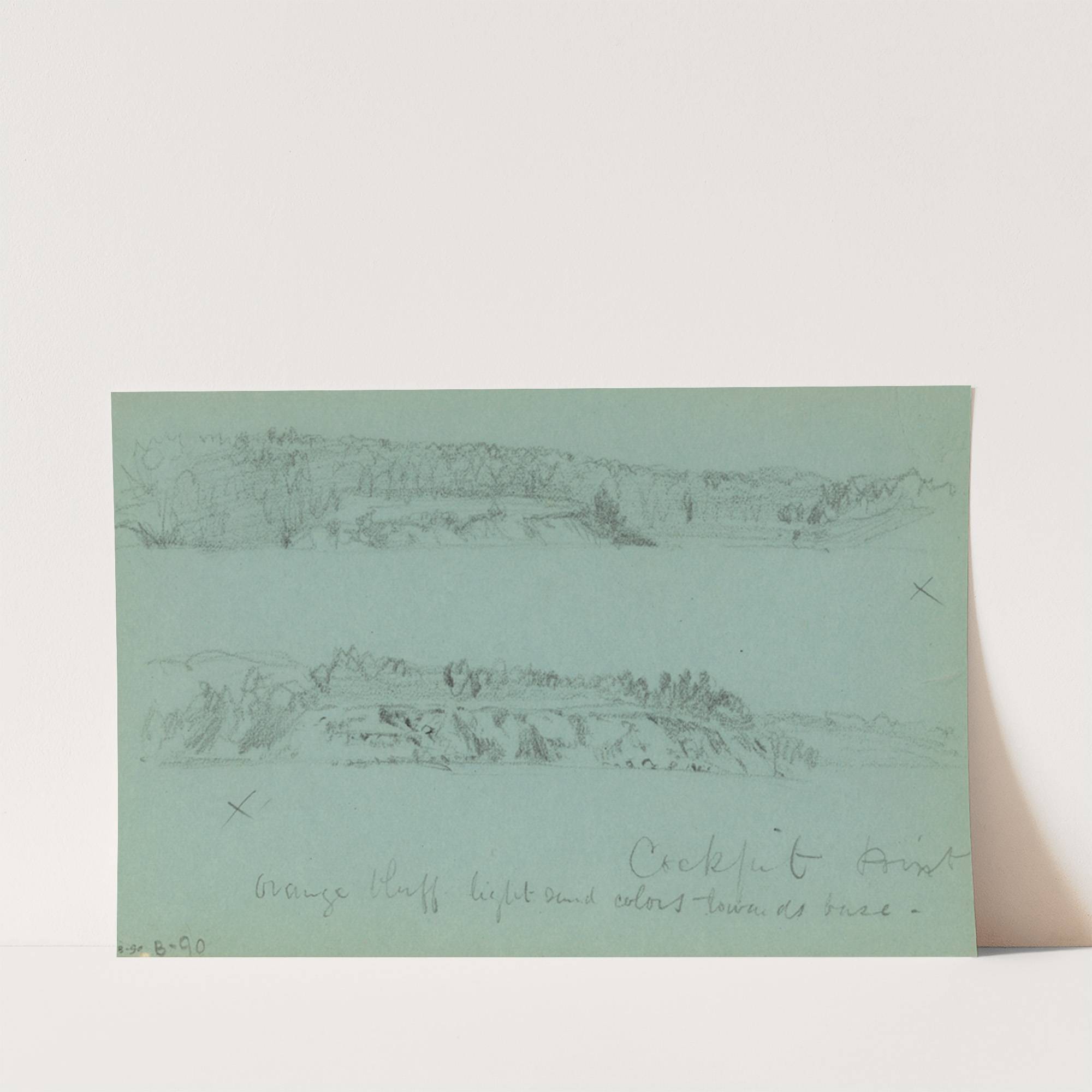 This delicate pencil sketch showcases a serene landscape, capturing the essence of nature with subtle, precise lines. The upper section depicts a distant horizon line with faint outlines of trees and rolling hills, hinting at a peaceful countryside scene. Below,...