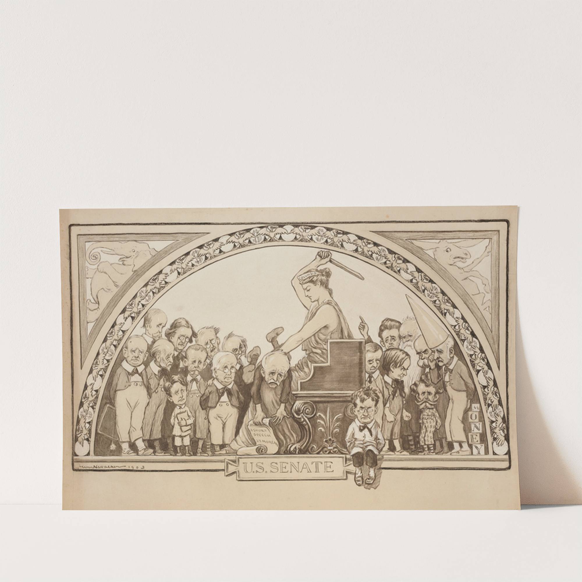 Columbia (a woman representing the United States) turns members of the U.S. Senate over her knee and spanks them. (1903) by William Henry Walker - Wall Art Print