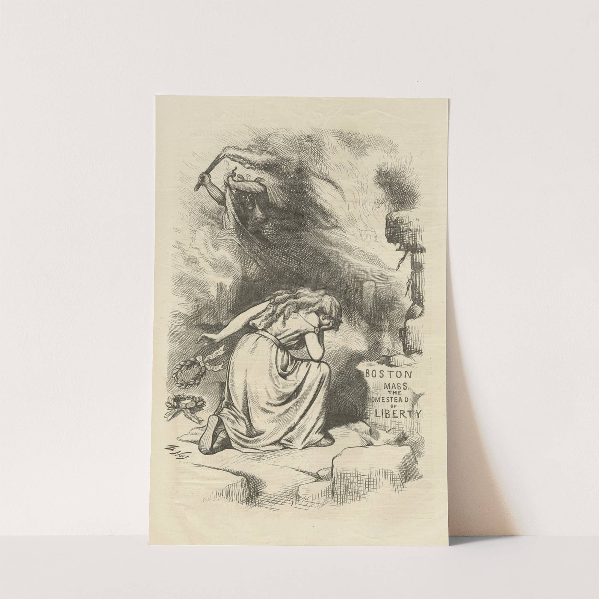 Columbia lays aside her laurels to mourn at the burning of her birthplace (1872) by Thomas Nast - Wall Art Print