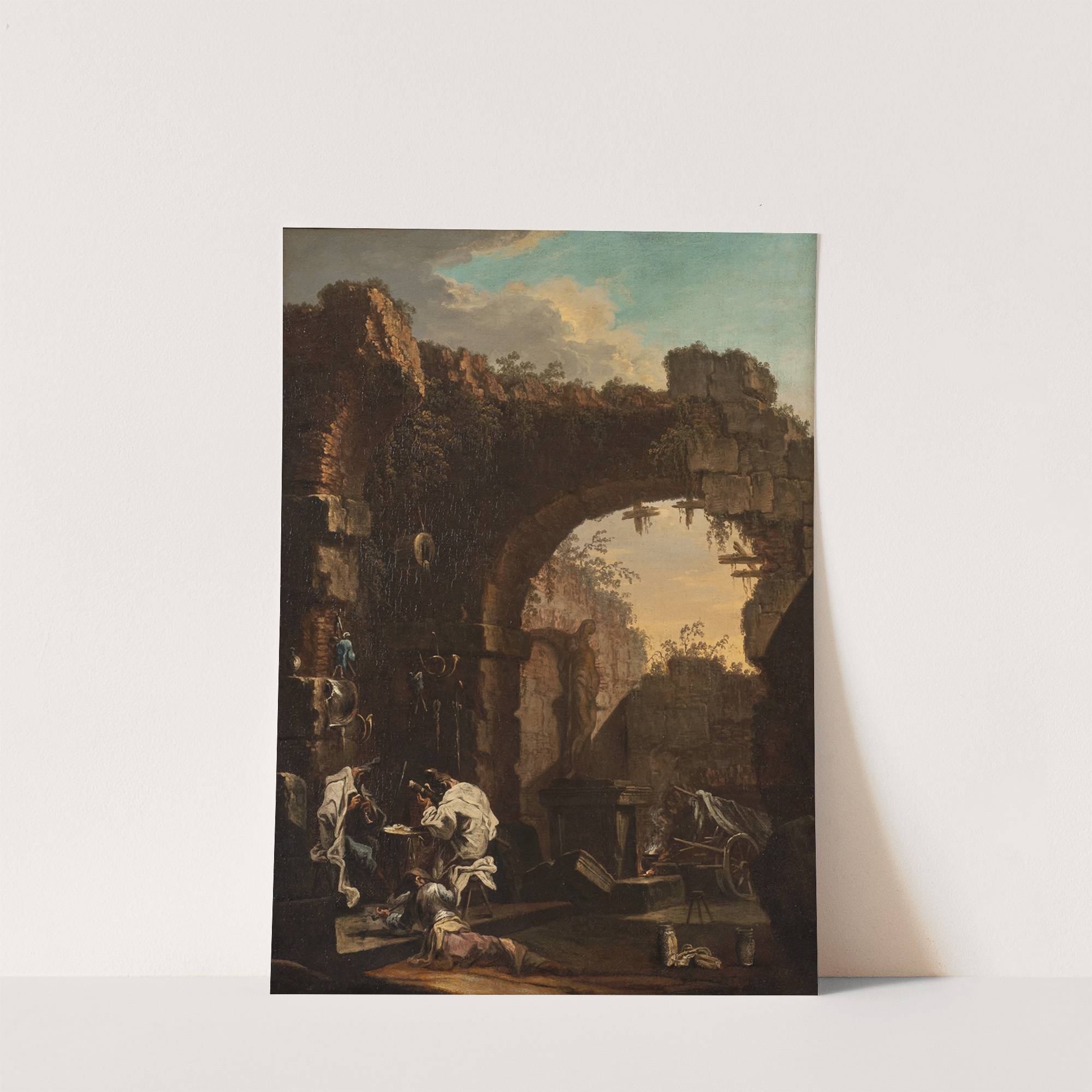 This captivating print features "Concert in the Ruins" by Alessandro Magnasco, showcasing an enchanting scene of musical revelry amidst ancient ruins. The composition is richly detailed with a dramatic interplay of liIn the foreground, a group of figures engages in...