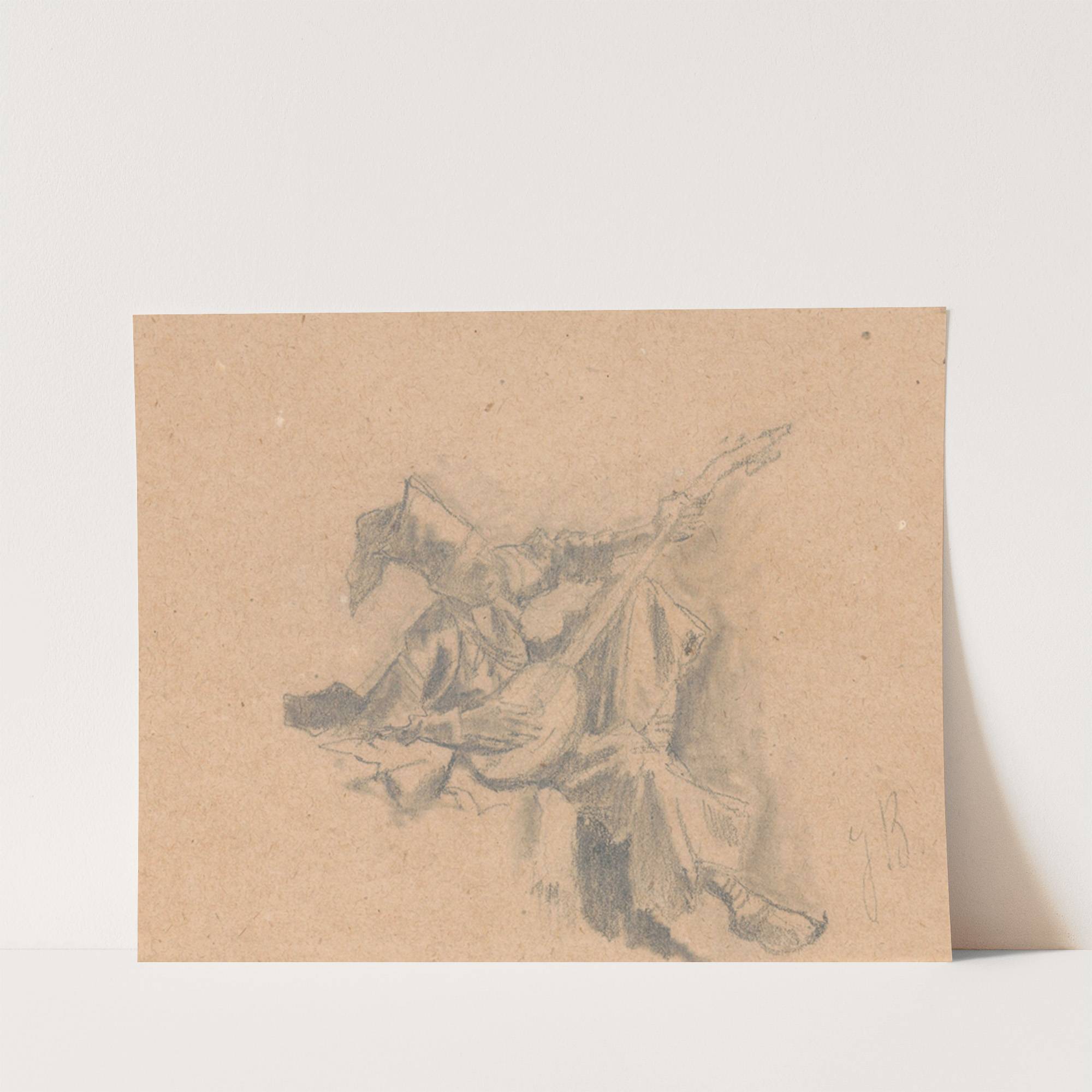 Cossack playing the balalaika, study of a figure for the painting “The Lisowczycy camp” (1872) by Jozef Brandt - Wall Art Print