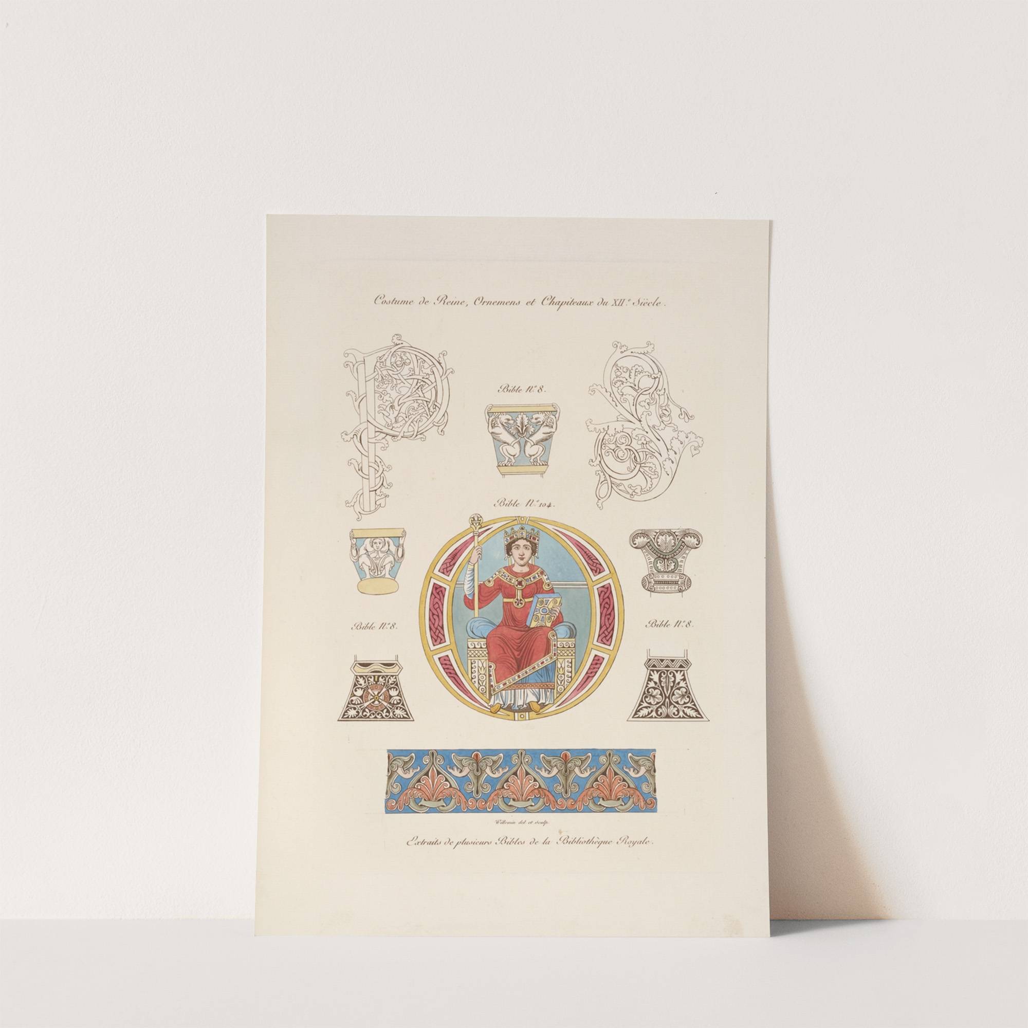 Costume de reine, ornemens et chapiteaux du XIIe. siècle. by Nicolas Xavier Willemin - Wall Art Print