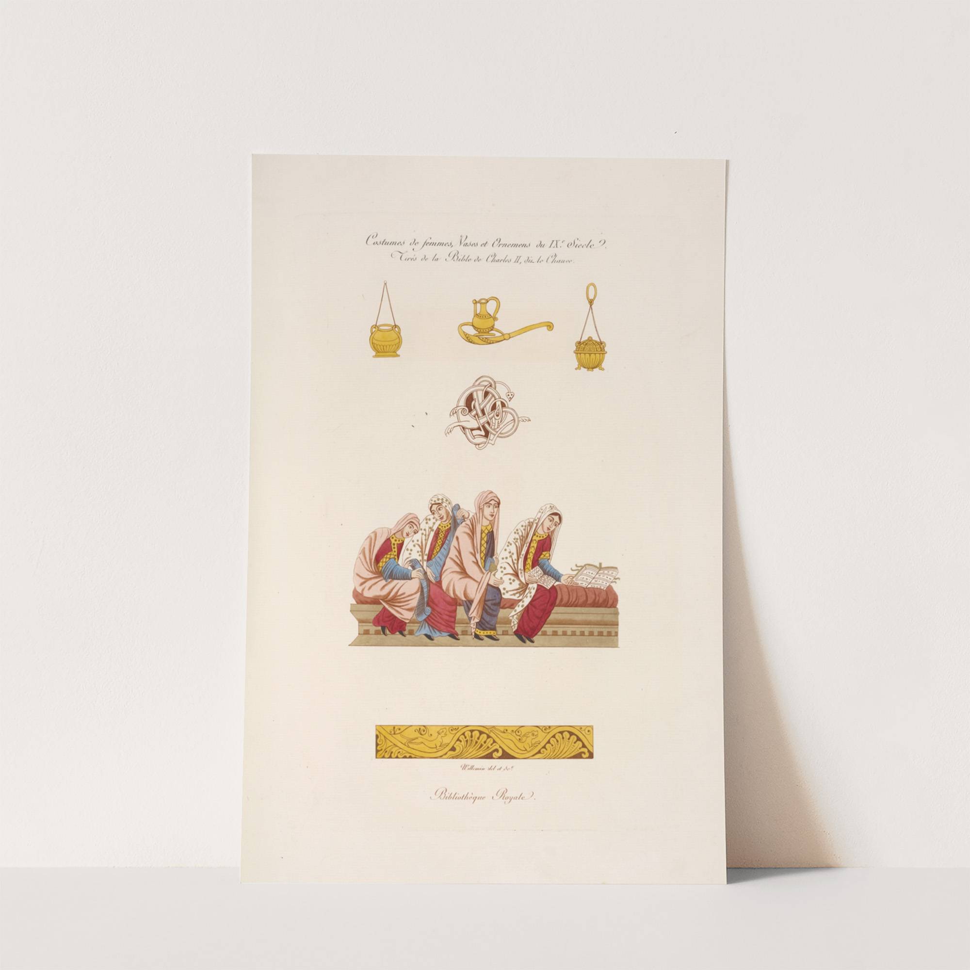 Costumes de femmes, vases et ornemens du IXe. siècle. Tirés de la bible de Charles II, dit le chauve. by Nicolas Xavier Willemin - Wall Art Print
